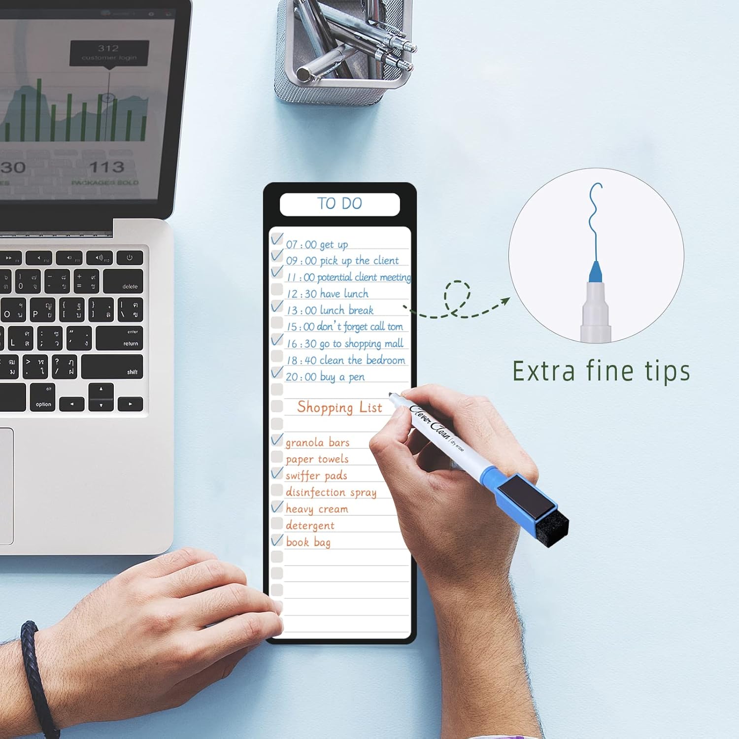 Magnetic Dry Erase List Board - 4"x12" Multifunctional List Board for Fridge - 6 Extra Fine Point Markers Included - Shipped Flat