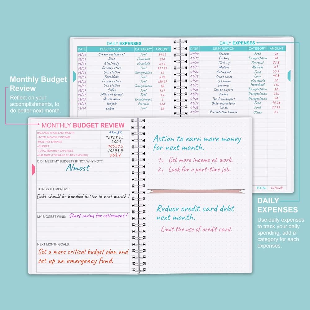 - MONTHLY GOALS & BUDGET & REVIEW ORGANIZED - 12 month budget planner helps you to set monthly goals, budget, review, and develop monthly habits, monetary strategies & action plans well. Write down monthly financial goals, put reminders of bills & payments on the calendar. Monthly budget section to plan your monthly budget in each categories. Track daily expenses during the month. Review monthly budget at the end of month, reflect on your accomplishments and think about how to improve next month
