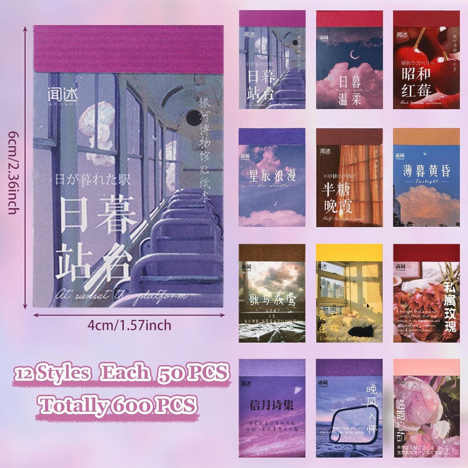 12 Set 600 Sheets Washi Sticker Set Quote Stickers for Scrapbooking Aesthetic Journaling Sticker Vintage Cute Washi Paper Sticker for Journaling Diary Planner Supplies (Classic Style)