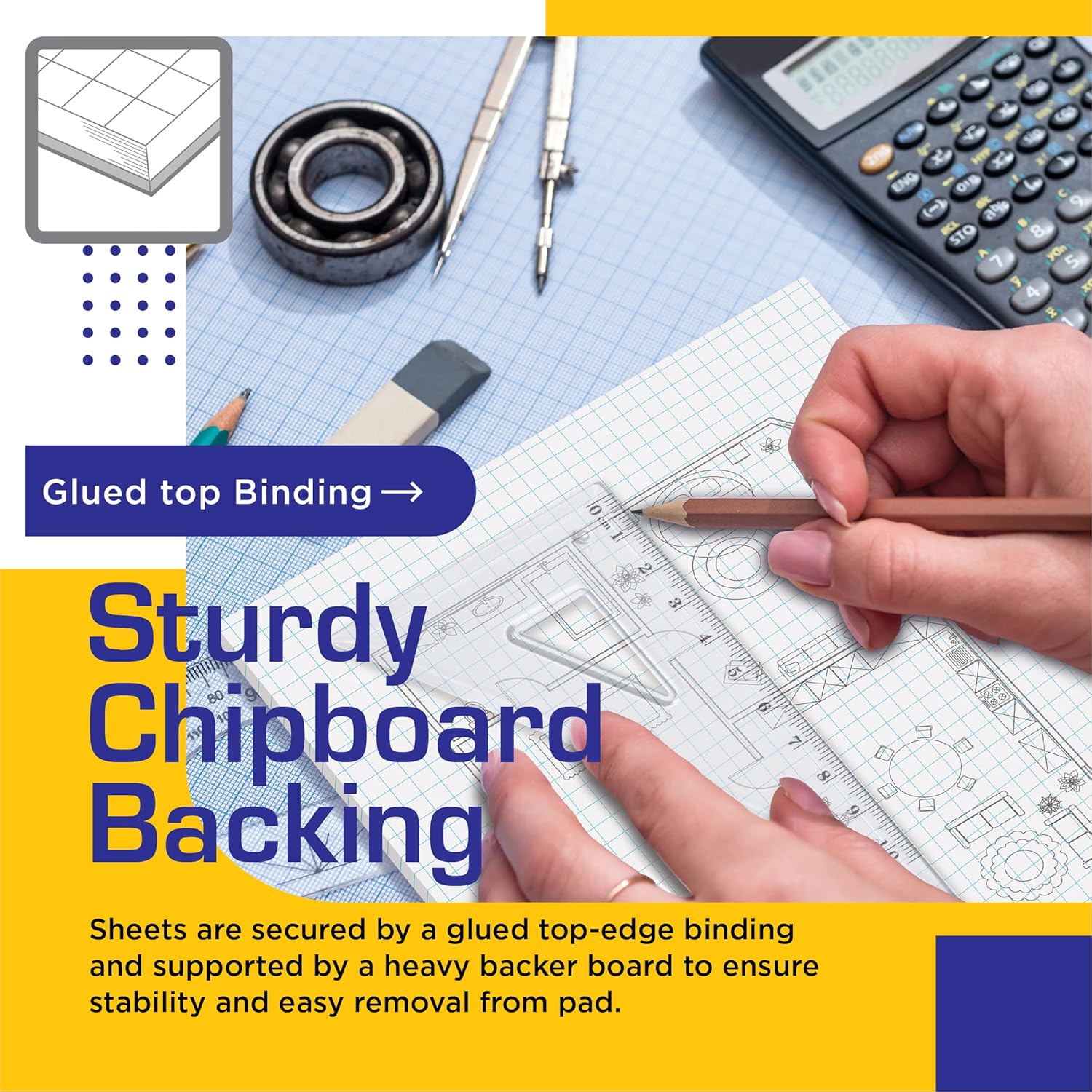 Better Office Products Graph Paper Pad, 8.5" x 11", 50 Sheets, Double Sided, White, 4x4 Blue Quad Rule, Easy Tear, Grid Paper, Graph Paper
