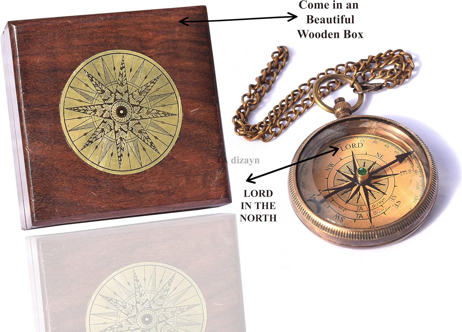 - Solid Brass Compass Antiquated Brass Finish With Trust in The Lord with All Your Heart -Proverbs 3: 5-6 Quote Engraved Compass with Wooden Box