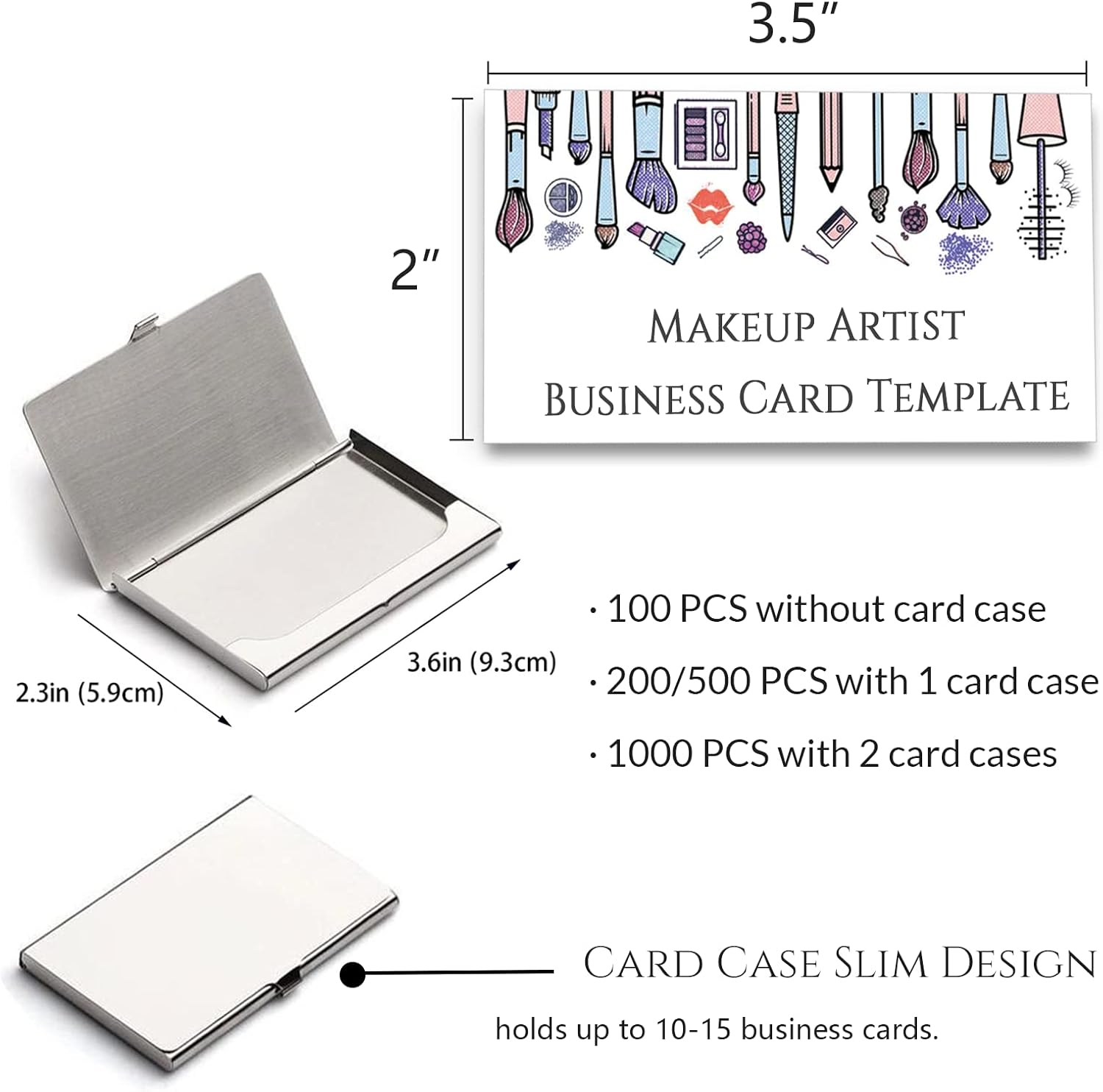 - Double-sided printing - Our design templates allow you to create your business card with single and double-sided options. There're 4 packs options for you to choose: 100pcs without card case; 200 pcs/500 pcs with 1 card case; 1000pcs with 2 card cases. The card case slim design holds up to 10-15 business cards while still easily fitting in your pocket.