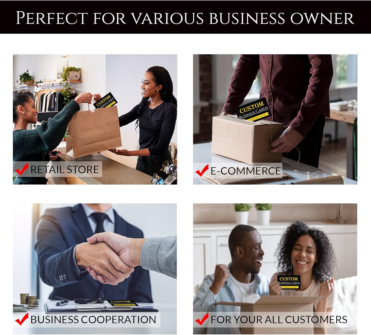 - Impressive Quality - Dimensions: 90x54 mm/3.5x2 inch; Our customized business cards feature high-quality waterproof paper, a high-grade matte coating process. Multiple precision cuts are used to leave a smooth border around each business card. The colors print are softer and more subtle that stand the test of time.