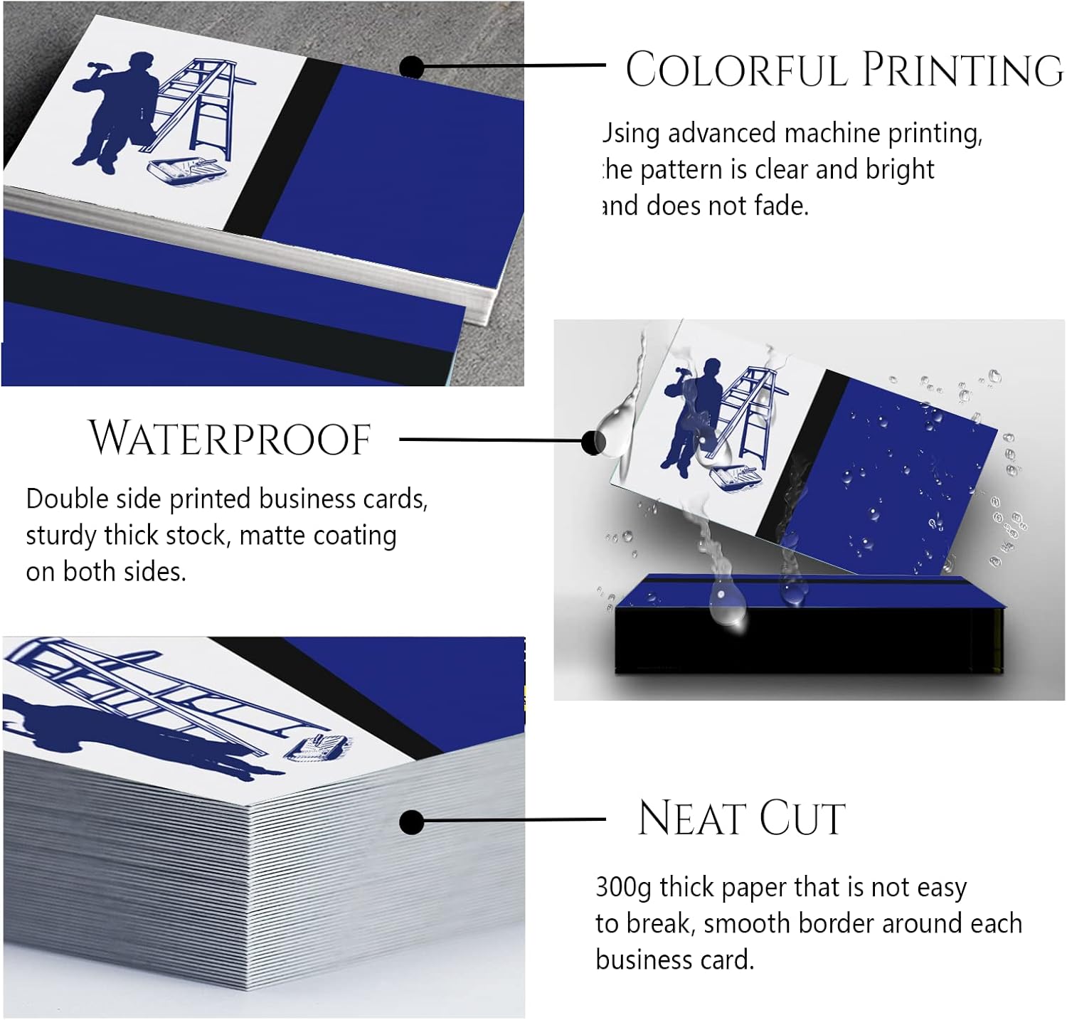 - 300GSM Thick Paper: Standard Size 3.5x2 inch; Our personalized business card features high-quality 300GSM thick paper that is not easy to break; Precision-cut leaves a smooth border around each card. It also comes with a high-grade waterproof matte coating process.