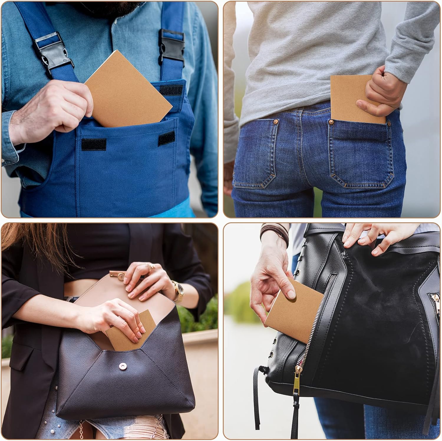 - Product Size: each mini notebooks measures 4.25 x 5.5 inches and each has 26 sheets of paper in total; You will receive 100 packs of kraft notebooks in this package, enough for you to use for a long time, there are 24 sheets inner pages, proper size for you; Mini notebooks are convenient to carry, can easily fit into your backpack, schoolbag, pocket or wherever you can fit them