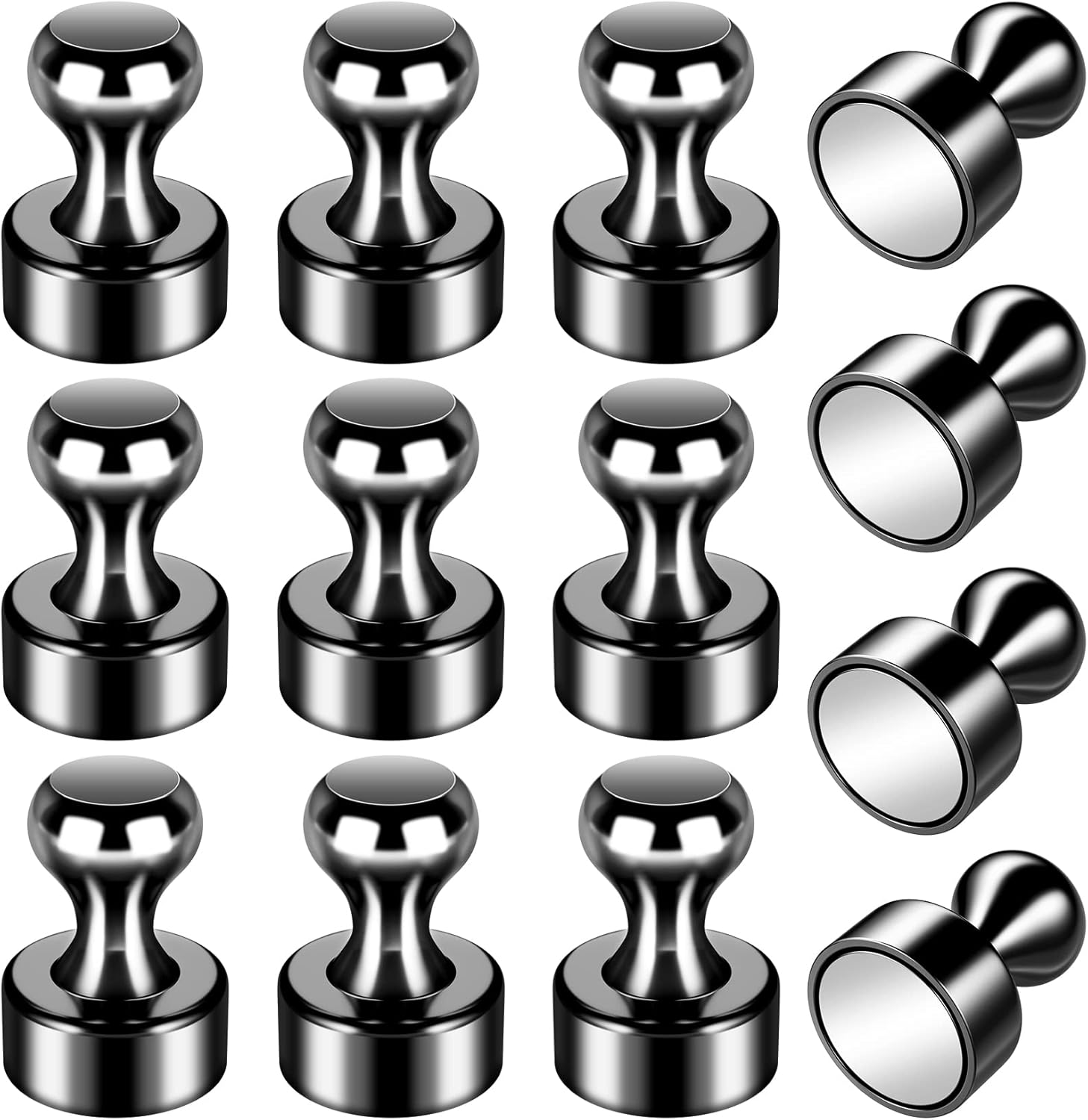 - 🛒GREAT VALUE FOR PRICE: There are 12 pack magnetic push pins in the plastic set, and each magnetic push pins is smooth but easy to grasp, which are powerful and of great value. Due to strong magnetism, the fridge magnets are best for DIY magnetic walls, guestbooks, recipes, and memos.