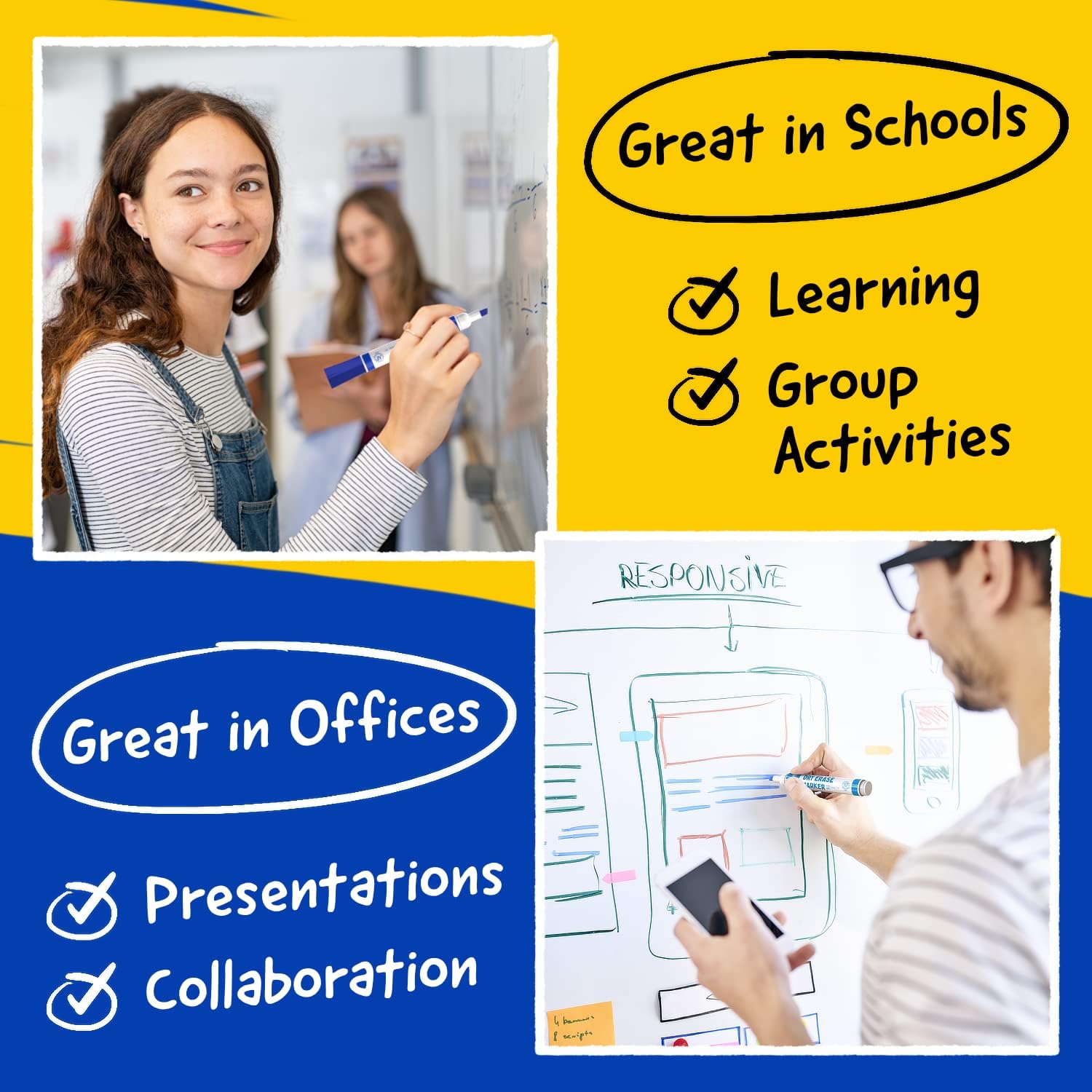 - Erasable Markers for Whiteboard - Dry Erase Marker set that dry quickly, erase quickly with any cloth or dry eraser. Dry erase markers thin fine tip allows to make lines without any breaks, making them perfect for classrooms or conference rooms.
