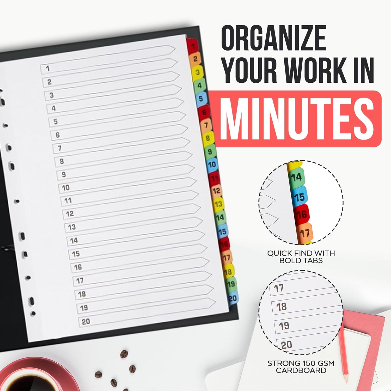 - Enhanced Organization: Our A4 binder dividers with 20 numbered tabs offer a simple yet effective solution to keep your documents neatly categorized and easily accessible.