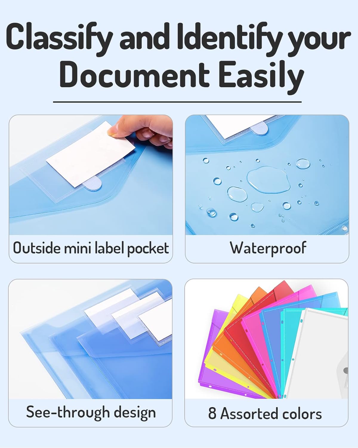 - Large Capacity: Measures 8.6 x 11.6 inches, perfectly fitting letter-size documents (8.5" x 11"). Holds over 50 sheets with ease. Great for storing documents, stationery, charts, invoices, accessories, home supplies, photos, and more.