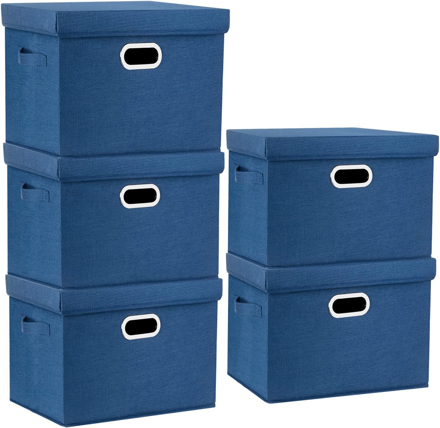 TYEERS Large Storage Bins with Lids, Collapsible, Washable, Fabric Storage Boxes for Organizing, 17.3x11.8x11.4 inches, 5 Pack, Classic Blue