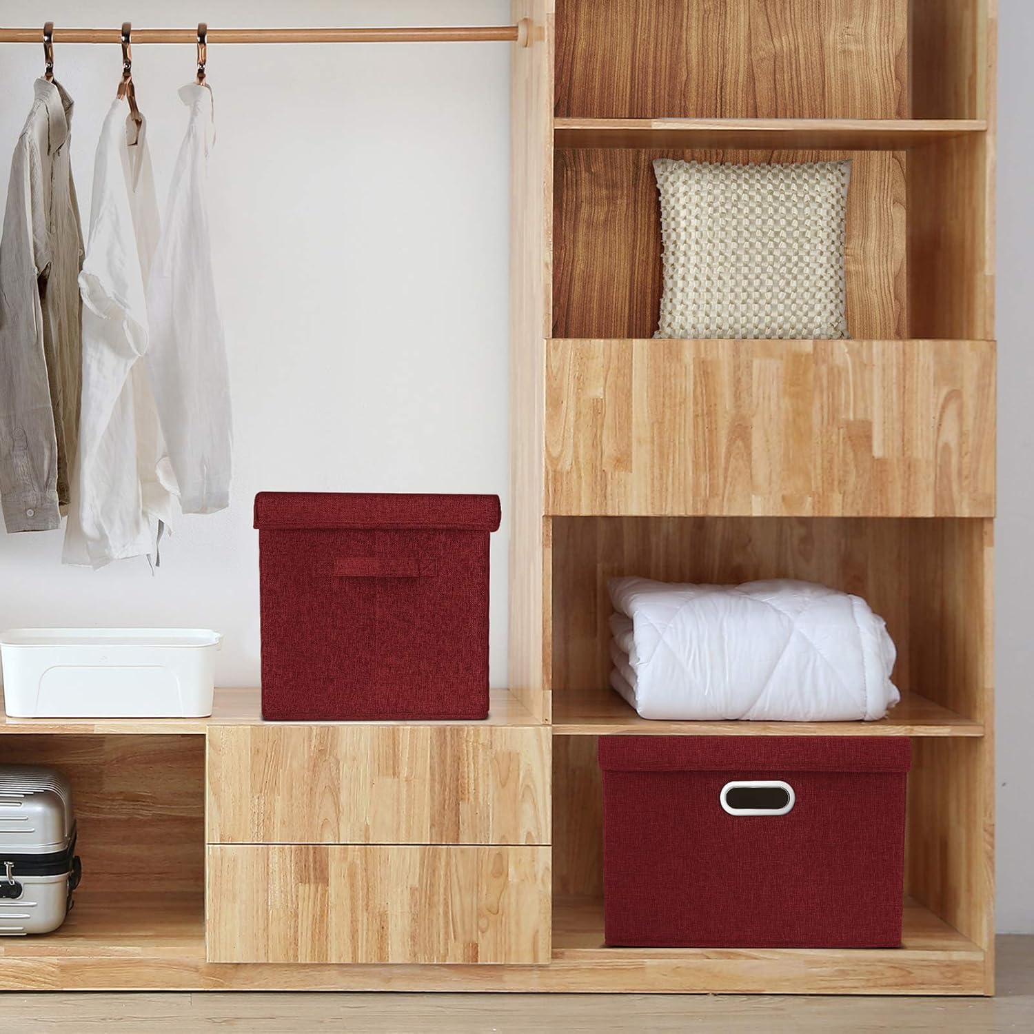 TYEERS Large Collapsible Storage Bins with Lids, Organization Bins for Closet Storage, Clothes Storage, Folding Storage Box with Lids for Home Office Storage - 5 Pack - Red Wine
