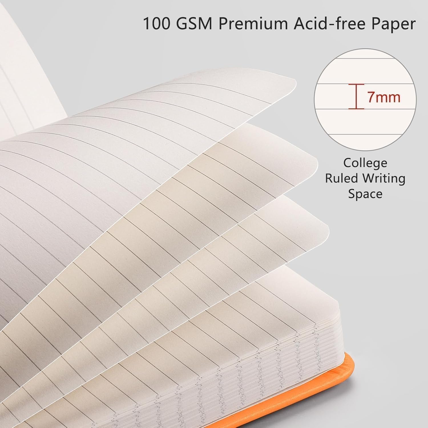 - LINED JOURNAL NOTEBOOK: RETTACY Lined Journal Notebook comes in a A5 size (5.7'' x 8.3''), 192 numbered pages, 7 mm college ruled, durable and smooth leather hardcover, 100 GSM thick acid-free paper, 180° lay-flat, pen holder, elastic closure band, 2 ribbon bookmarks, inner pocket & sticky notes