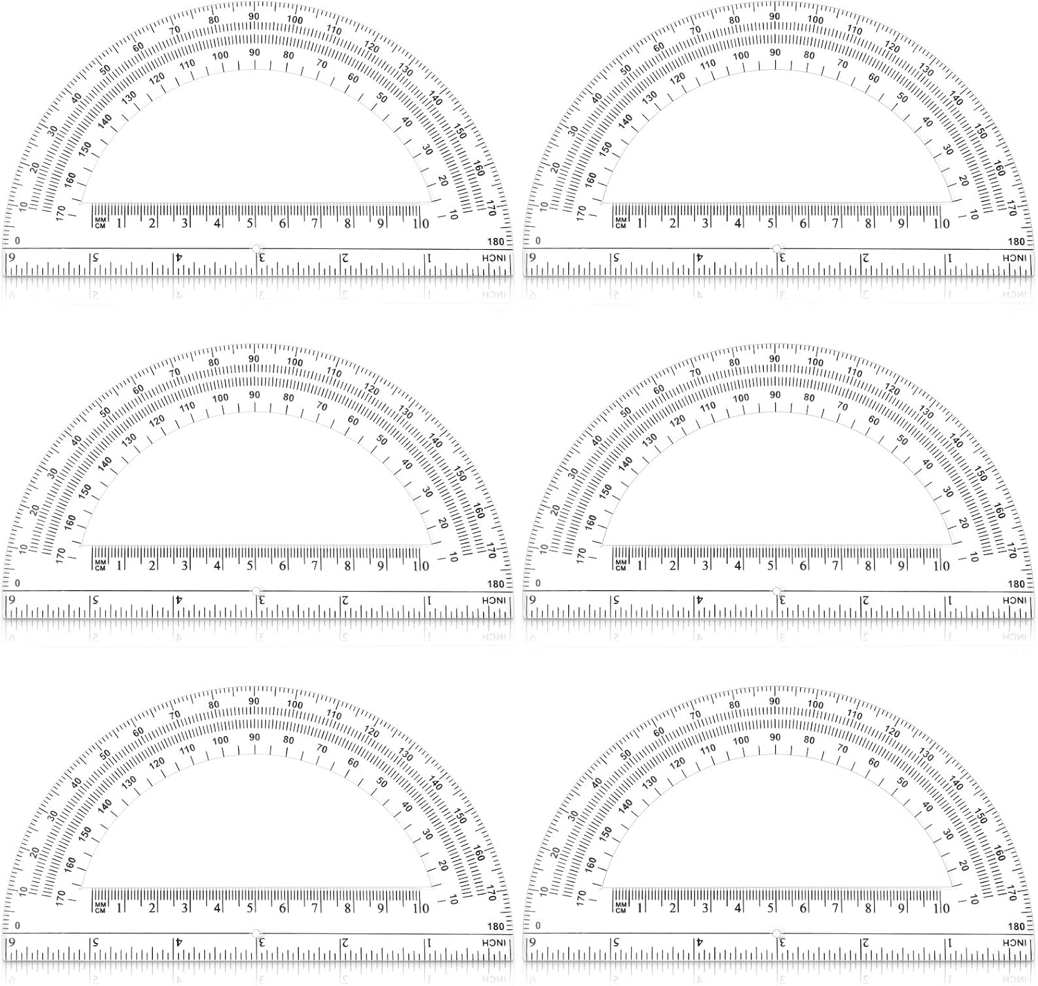 Zonon 6 Pieces Plastic Protractors Bulk Classroom Clear Math Protractors 180 Degrees 6 Inch for Geometry Student, Angle Measurement, Students Back to School Supplies Office Supplies