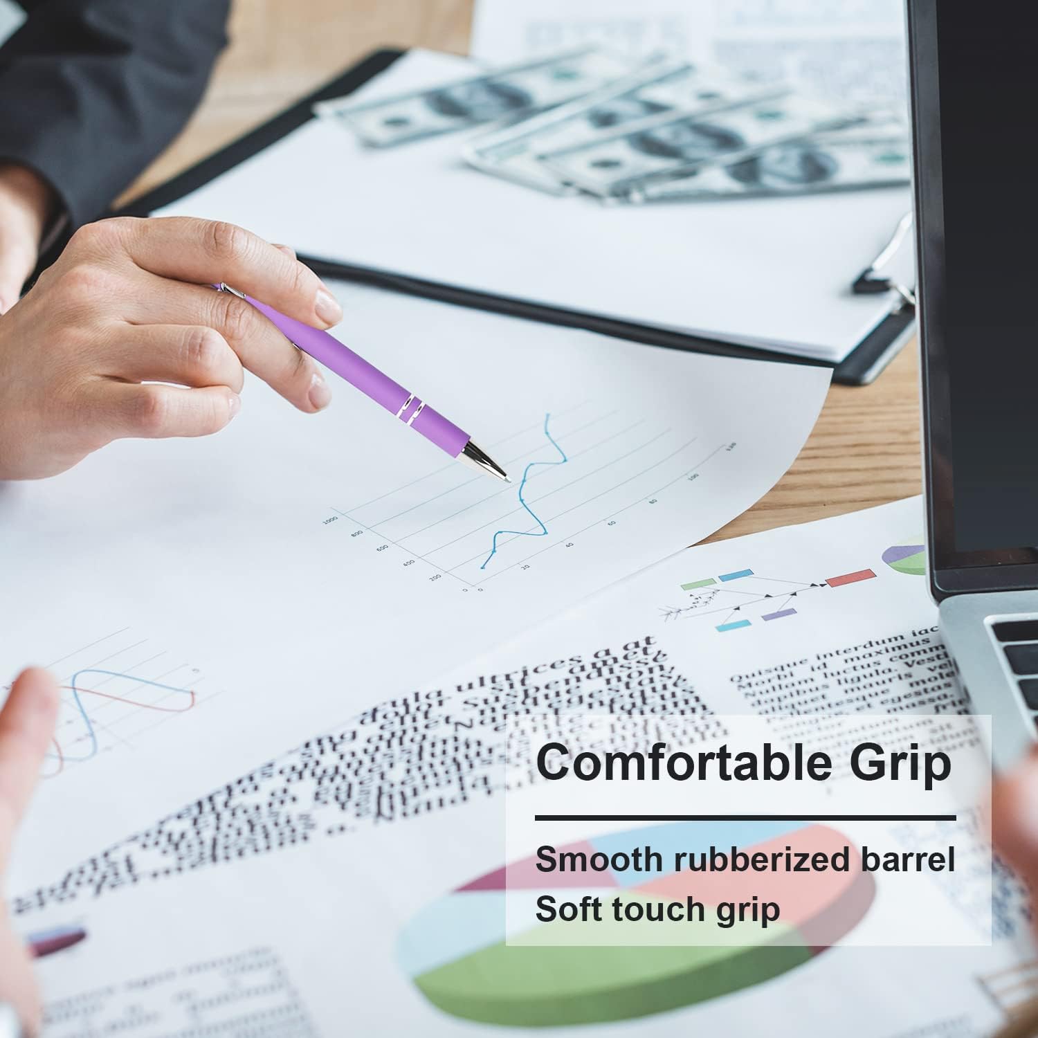 - 【COMFORTABLE GRIP】: The smooth rubberized barrel gives a soft touch grip for extra comfort, smooth writing and just-right weight for effortless.