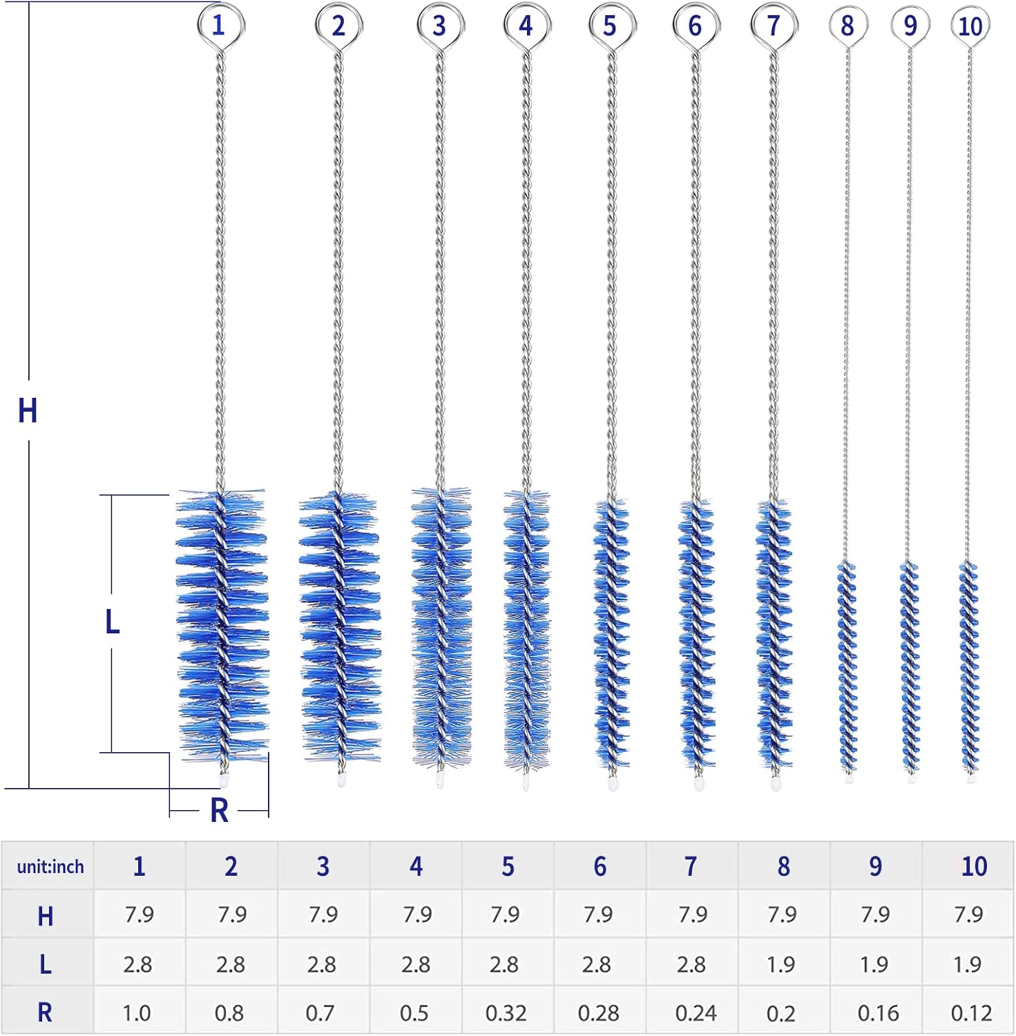 - ➽ Material: Stainless Steel and Nylon Bristles for Bottle Cleaning Brushes and Pipe Cleaning Brushes