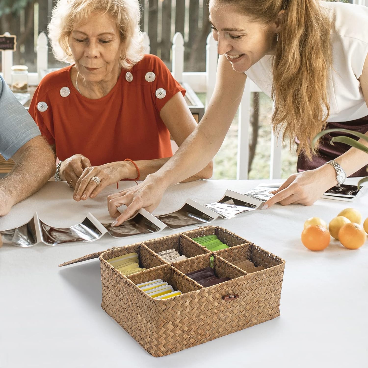 - Material: Made of natural seagrass with iron wire frame, provides durable quality and soft touch. The cover is designed to protect your tea bags from dust.