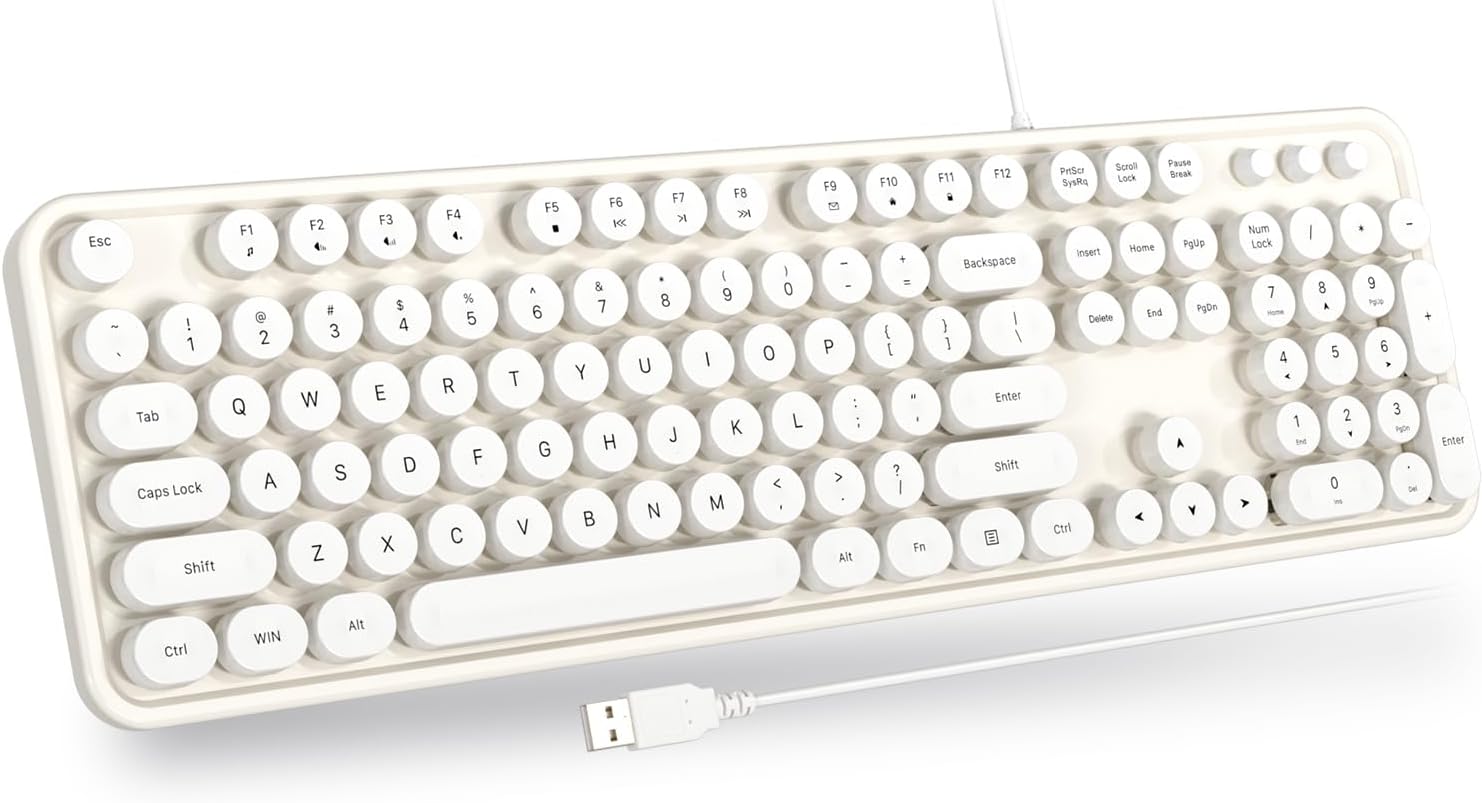 USB Wired Computer Keyboard - Retro Typewriter Keyboard - Full Size Keyboard with Number Pad for PC Laptop Desktop Windows (Creamy White)