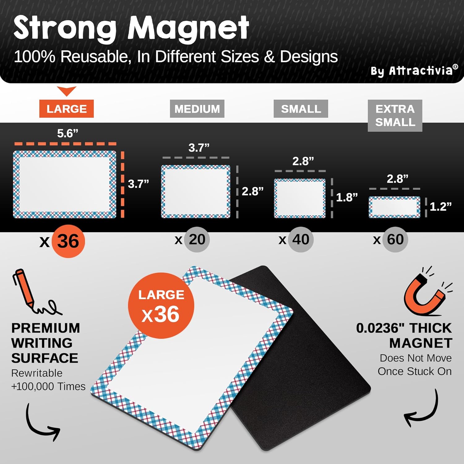 Dry Erase Magnetic Labels 5.6 x 3.7 in, Pattern Borders, Large Dry Erase Magnets, 36-Pack, Erasable Write-On All-Purpose Labels, for Office, Education, Home, Whiteboard