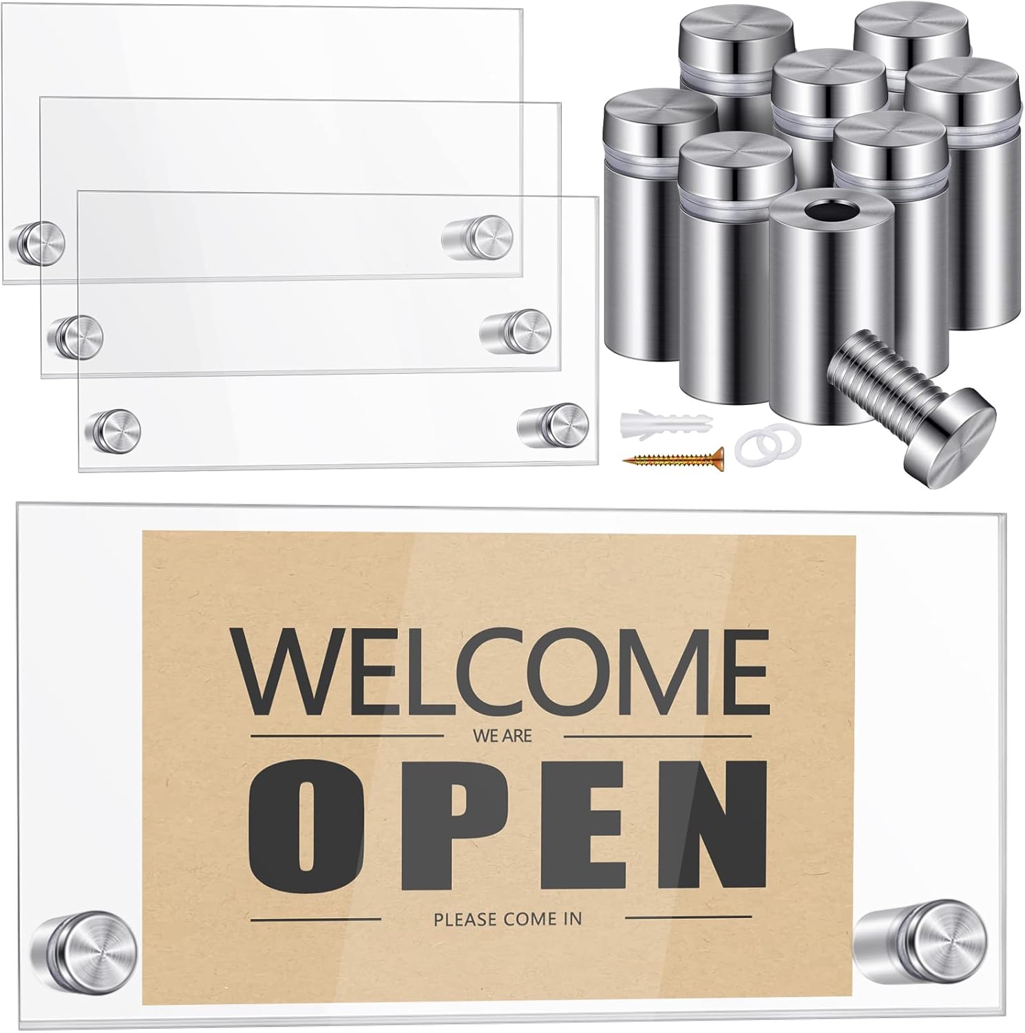 Demissle 8 Sets Clear Acrylic Wall Name Plate Holders Office Door Mount Name Plate Holder with Stainless Steel Standoff Screws for Office Home Store Restaurant (6 x 3 Inch)