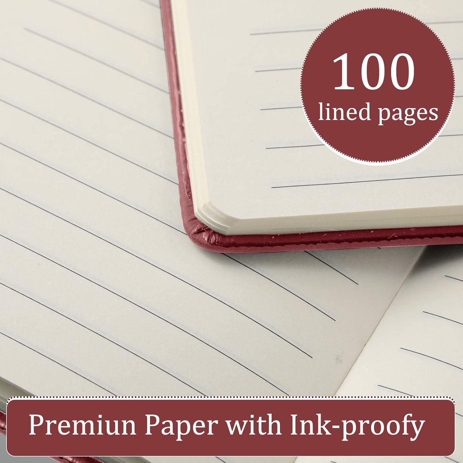 Laumoi Pocket Notebook Journals with Pens A6 Cute Small Journal Notebook Ruled Lined Mini Notepad Hardcover Executive Notebooks Set with Pen Holder for School Office, 3.7 x 5.7 Inch (Burgundy)