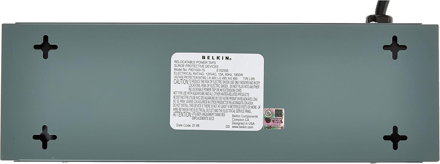 Belkin Power Strip Surge Protector - 10 AC Multiple Outlets, 15 ft Long Heavy-Duty Metal Extension Cord with Wall Mount Holes for Home, Office, Travel, Computer Desktop, Laptop & Phone Charging - 5PK