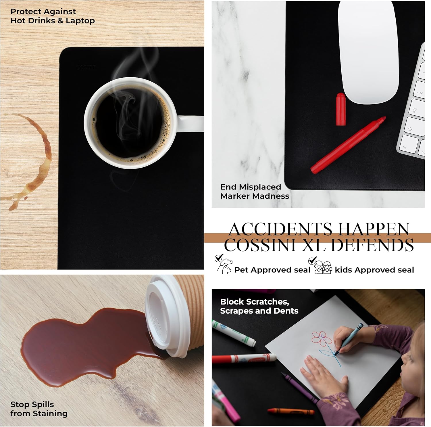Cossini XL Desk Pad - Large Vegan Leather Desk Mat 17 x 36- Buttery Smooth Writing, Damage Blocking, Non-Slip, Waterproof - Home Office Computer Desk Protector Blotter Laptop Keyboard Mouse Pad