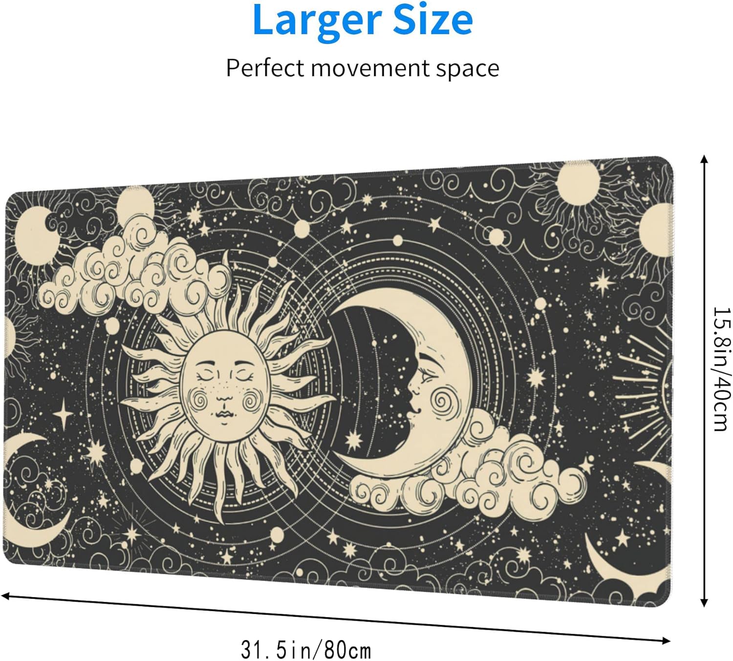 Desk Mat,Celestial Sun and Moon Extended Gaming Mouse Pad for Office Work & Game,Computer Keyboard Mouse Mat Desk Non-Slip Rubber Base Large Mousepad with Stitched Edges, 31.5x15.7inch