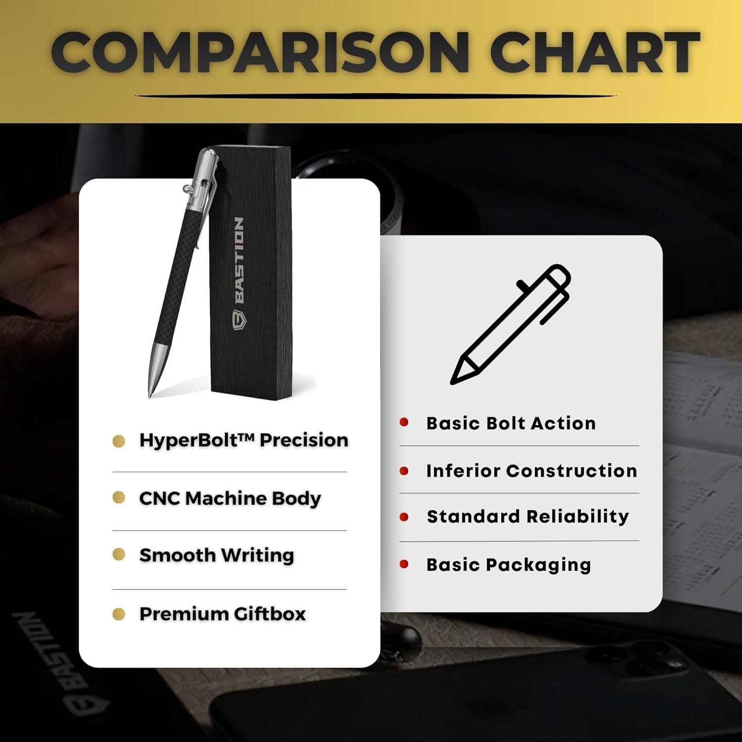 BASTION® Luxury Slim Bolt Action Pen, EDC Pen with Fine Tip, Professional Ballpoint Pen for School and Work - Carbon Fiber-Stainless Steel