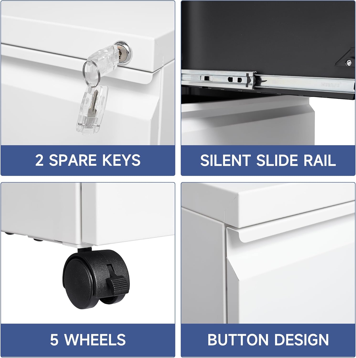 - 【Sturdy and Durable】: The filing cabinet is made of 0.8mm thick steel plate, which is scratch-resistant and stain-resistant. Compared with wooden filing cabinets, they are more durable and moisture-proof.