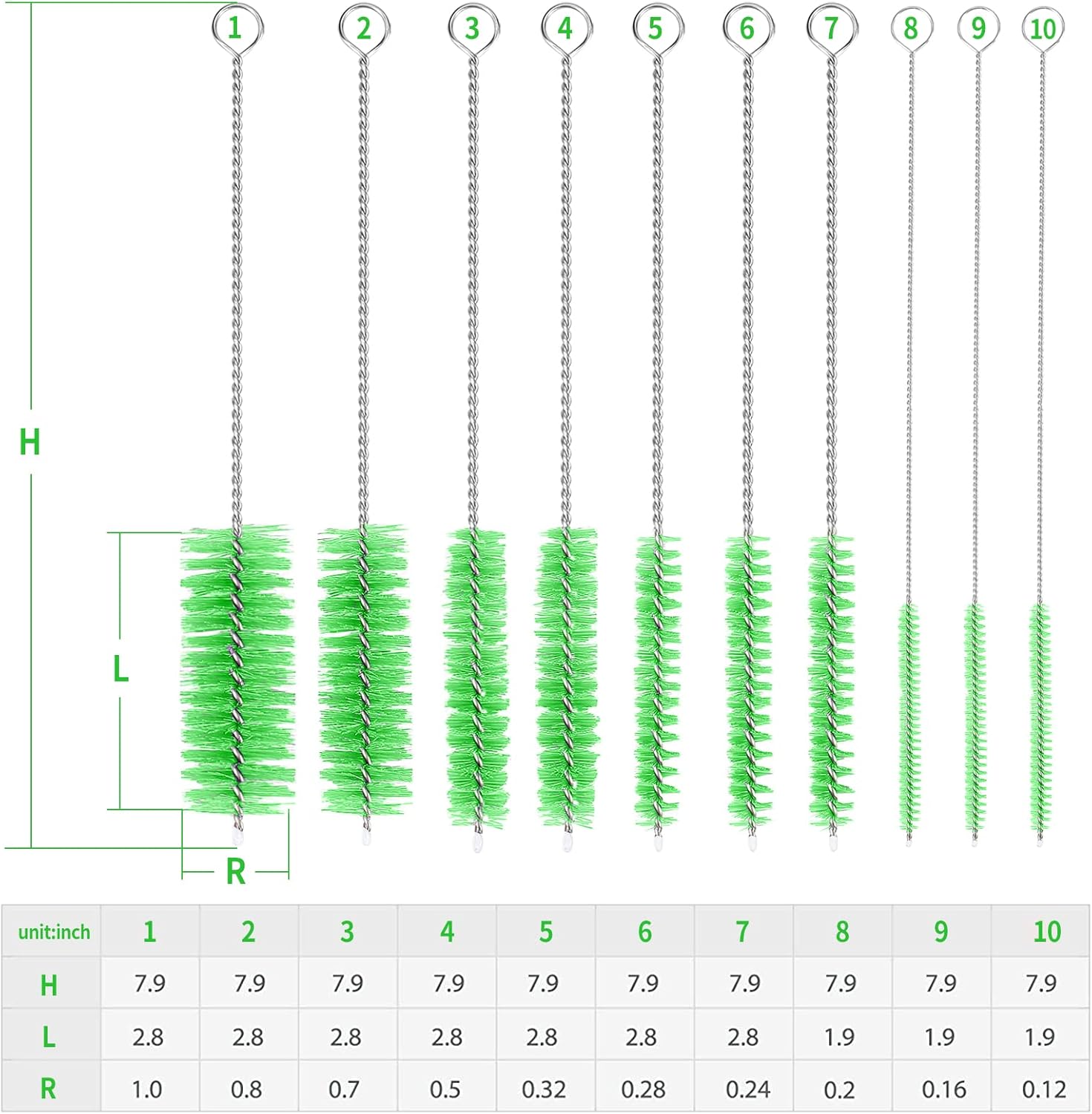 - ➽ Material: Stainless Steel and Nylon Bristles for Bottle Cleaning Brushes and Pipe Cleaning Brushes