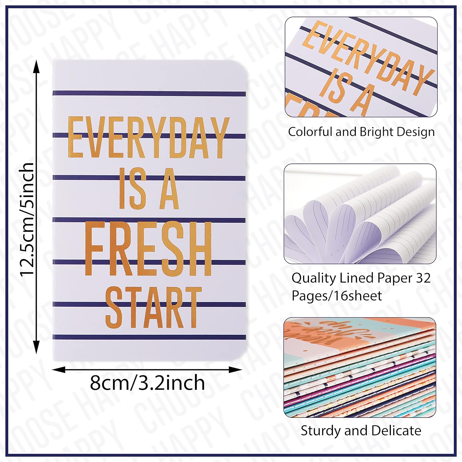 - What You Will Get: package includes 24 pieces of colorful cute notepads for woman in 12 different happy cover designs, with some positive phrase; Sufficient quantity and various styles can meet your demands, and you can share them with your friends and family