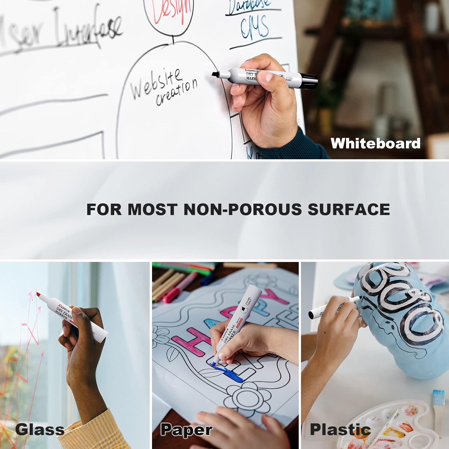 - Low-odor & Non-toxic: Comix dry erase markers are smear-proof, non-toxic, water-based and are made to low-odor, which is safe for use. Comforms to ASTM D-4236
