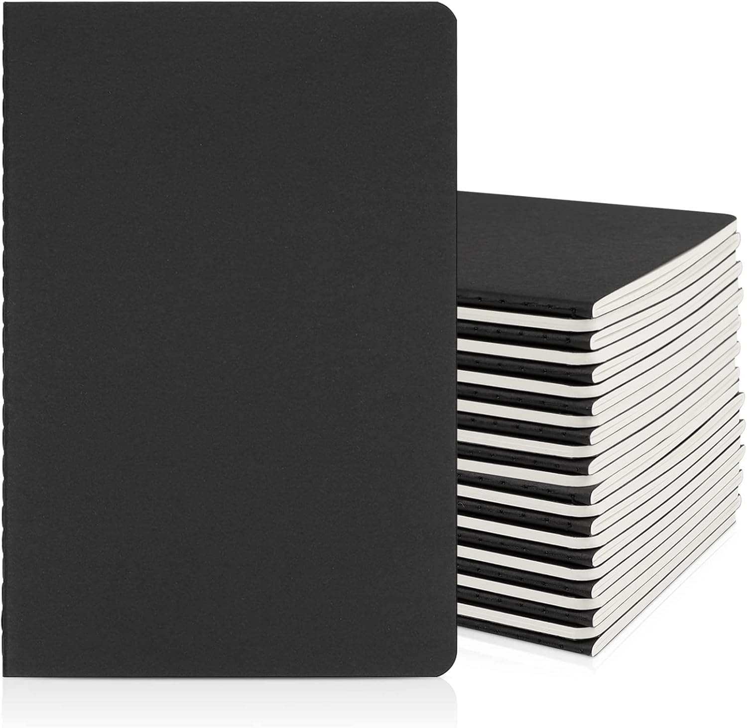 EUSOAR College Ruled Notebook, 24pcs A5 5.5"x8.3" 60 Pages Soft Cover Black Lined Subject Journal Notebooks, Writing Note Pads Sketchbook Memo, for Business Office Work Note Taking