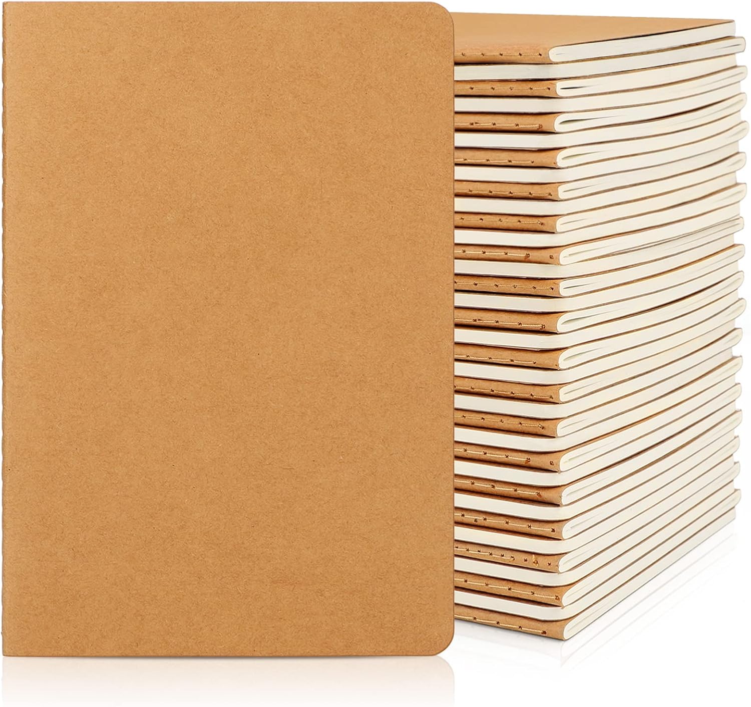 EUSOAR Blank Paper Notebook, 36pcs A5 5.5"x8.3" 60 Pages Soft Cover Kraft Subject Journal Diary Notebooks, Writing Note Pads Sketchbook Memo Composition, for School Office College
