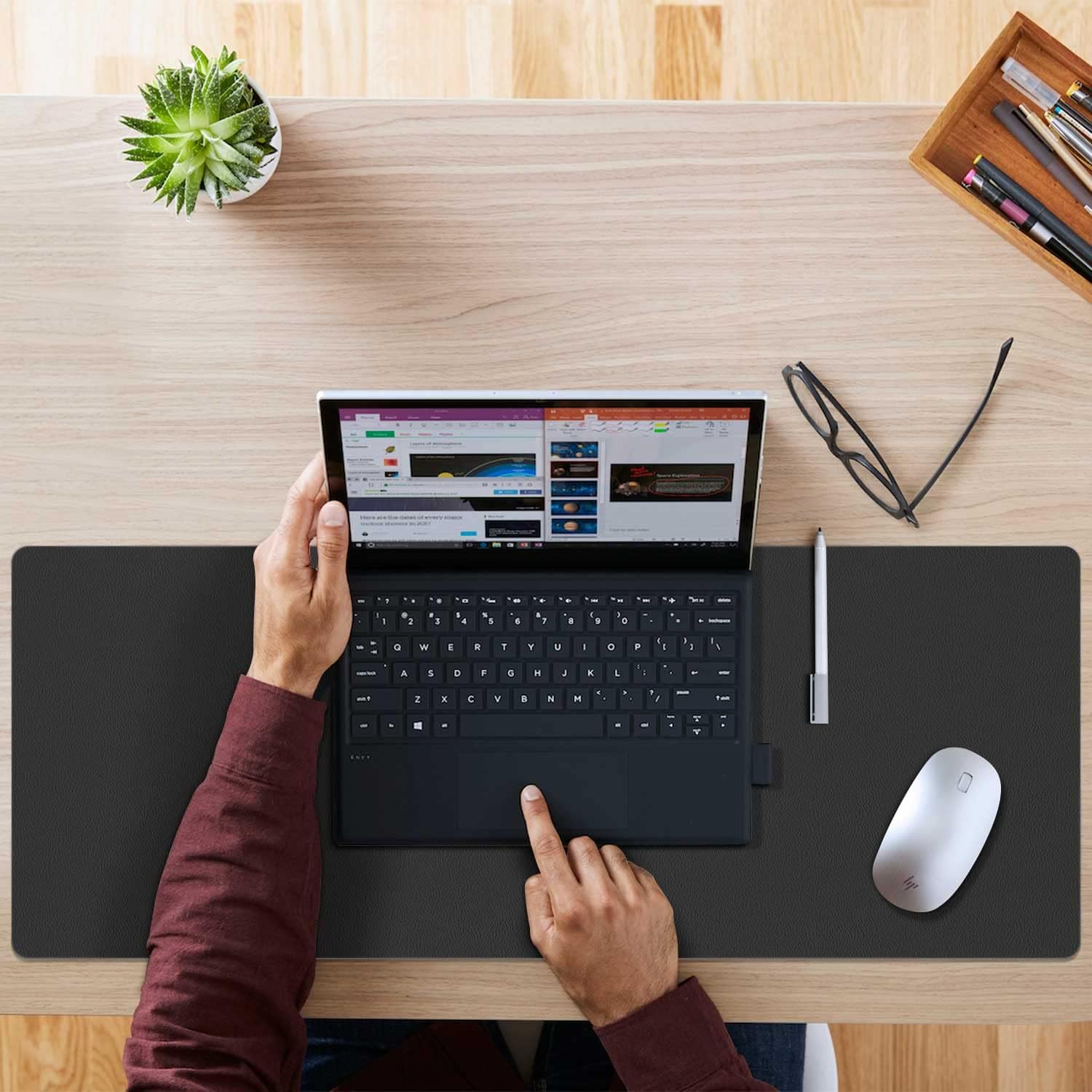 - Dual-Side Design: Our desk pad features the same material in different colors on each side, allowing you to use both. Simply flip it for a fresh look. This pad adds a modern and professional touch to your workspace