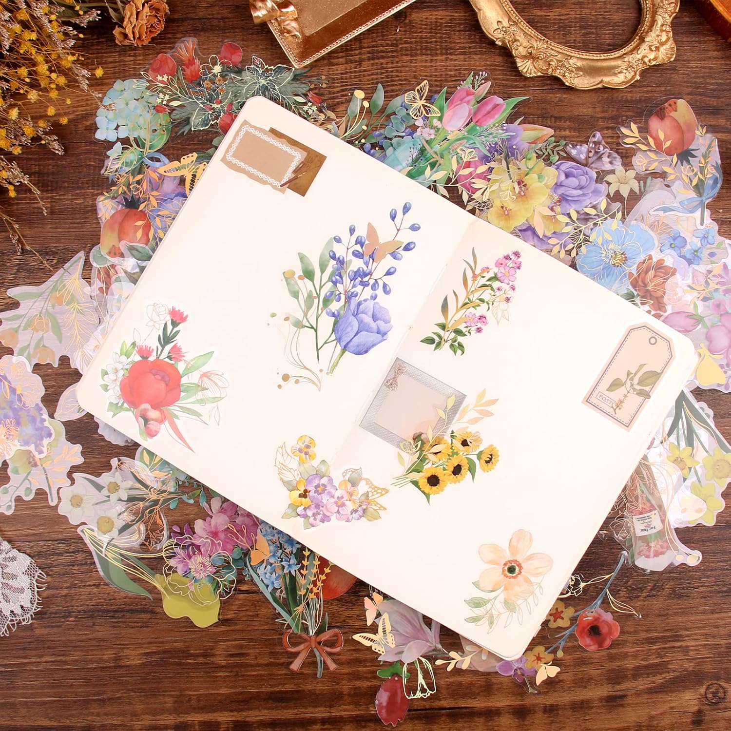 Dizdkizd Gilding Flower Stickers (240 Pieces) - Glitter Watercolor Transparent Stickers for Card Making Scrapbooking Envelopes Wrapped Gifts Arts and Crafts Journaling