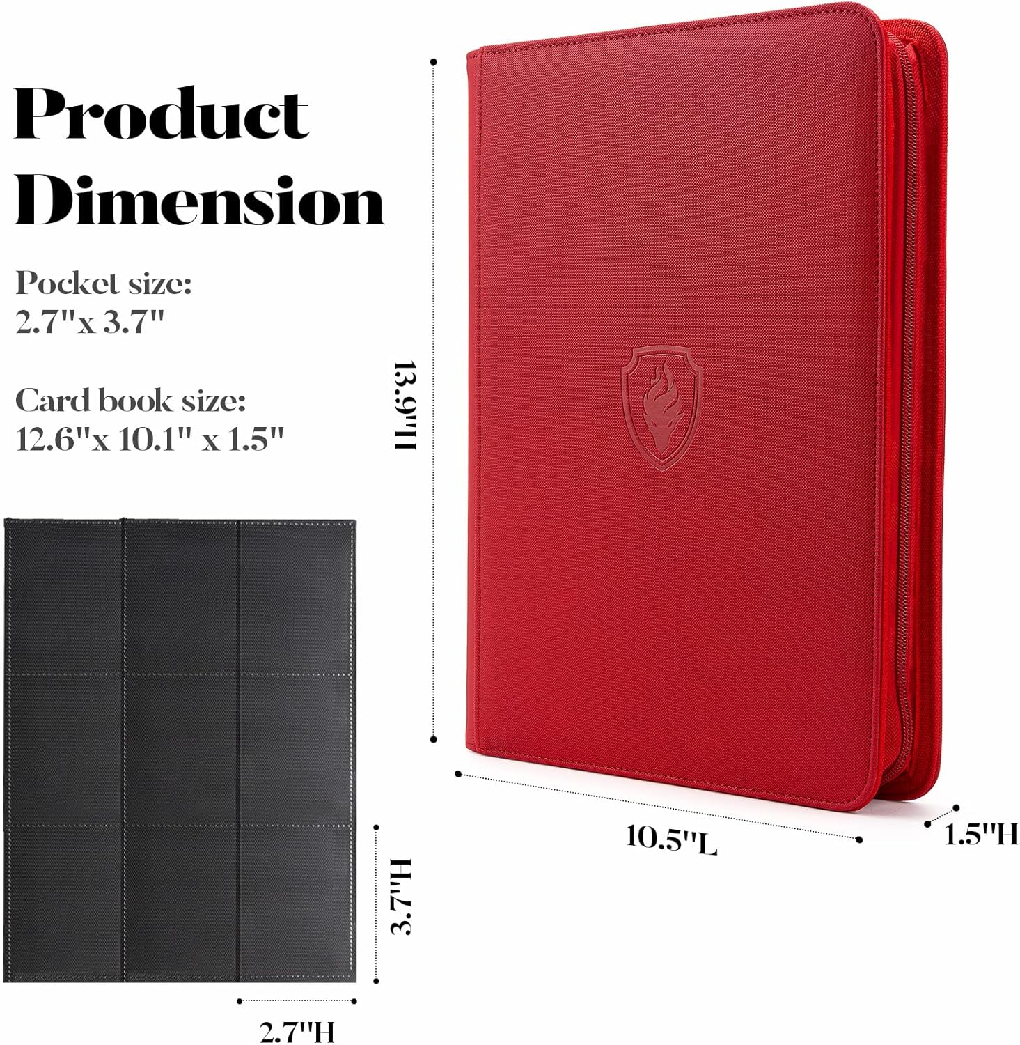 9 Pocket Zipper Card Binder, Fabmaker 360 Trading Card Holder Book, Premium PU Cover Zip Binder for Cards, Durable Side Loading Card Folders Album for MTG, TCG, Game Cards, Sports Cards, Red