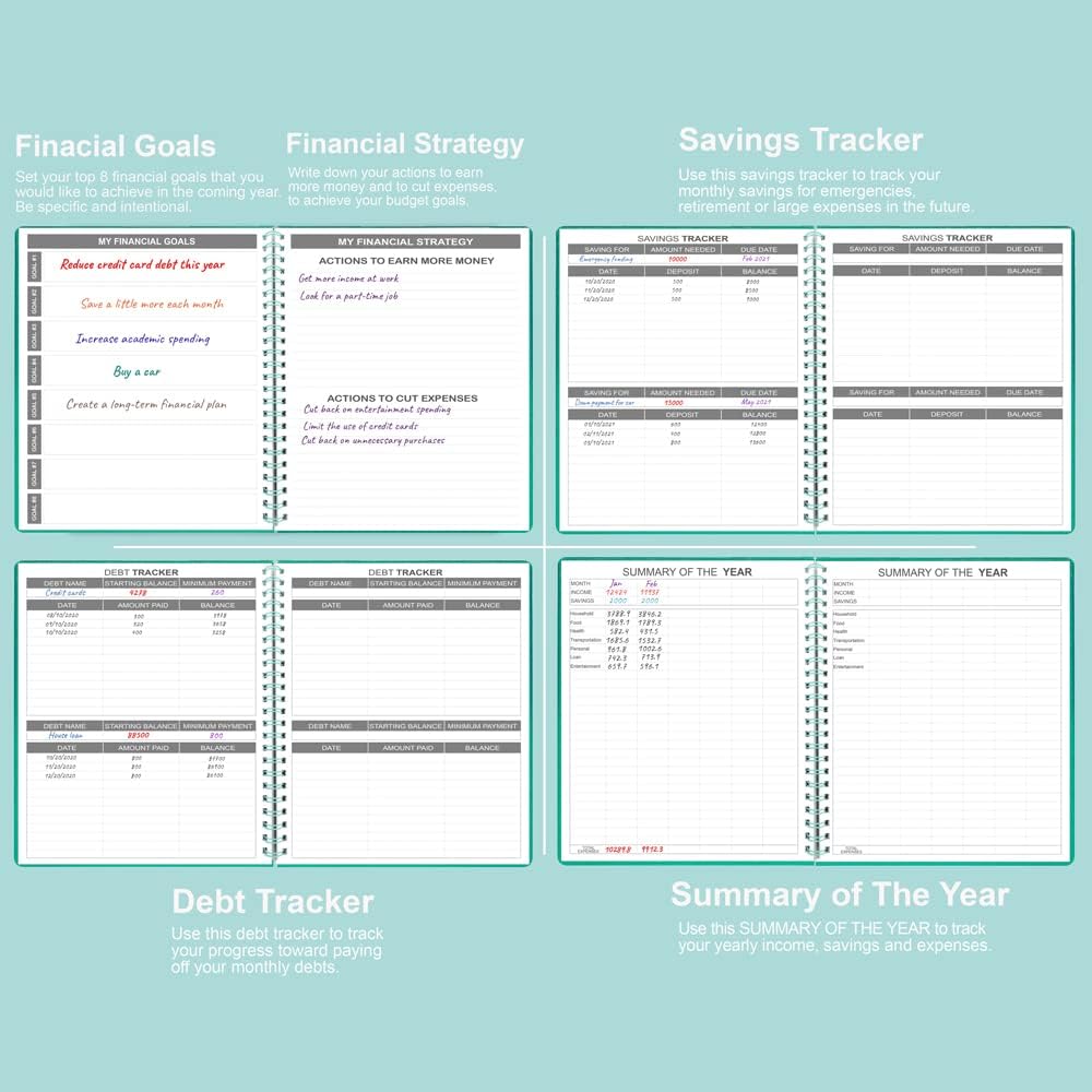 - UNDATED & 1 YEAR USE - Undated finance books start with 1 page for financial goals, 1 page for financial strategy, 4 pages for saving tracker, 4 pages for debt tracker, followed by 12 months(10 pages per month, 1 unique color for each month). 2 pages for Christmas budgeting, 2 pages for yearly summary and 12 pages for notes(colleague ruled). It is undated, so you could start at any time, suitable for 1 year use