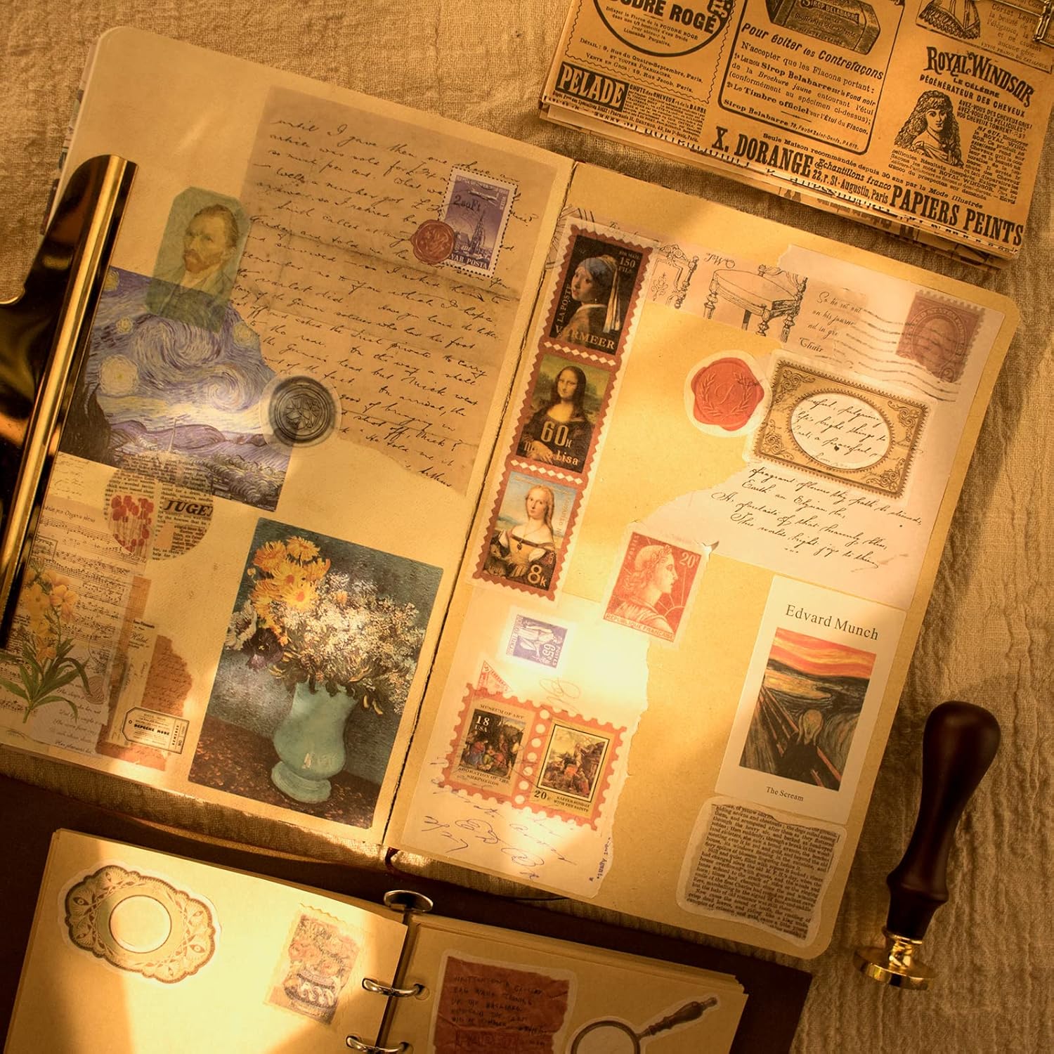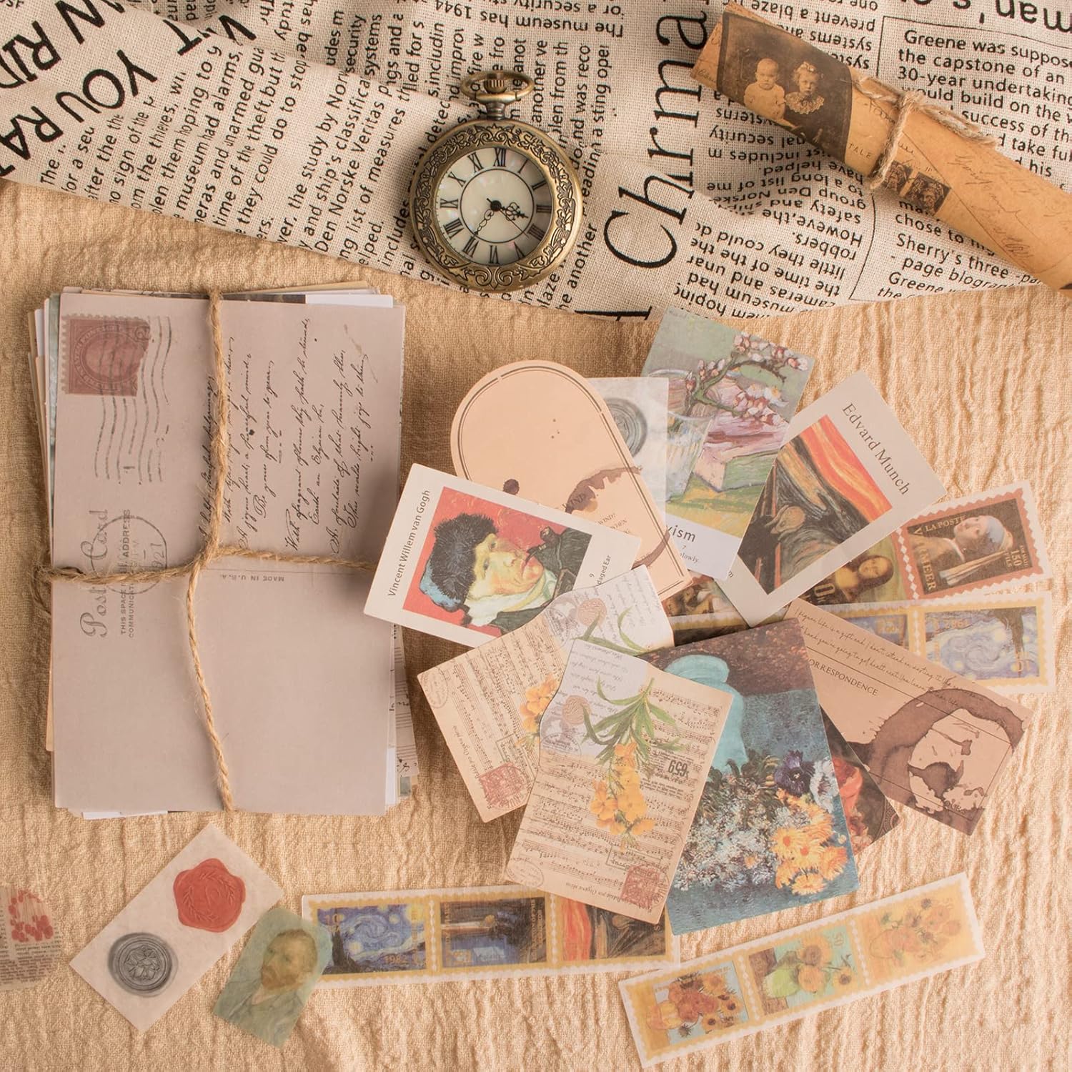 - ăArt Themesă200 Pieces art design themed assorted paper & stickers, including sheet music and envelopes, abstract paintings, old newspapers, vintage handwritings, flower paintings, various stamp stickers and more. Great for junk journaling, scrapbooking, collage or projects that require an artistic touch!