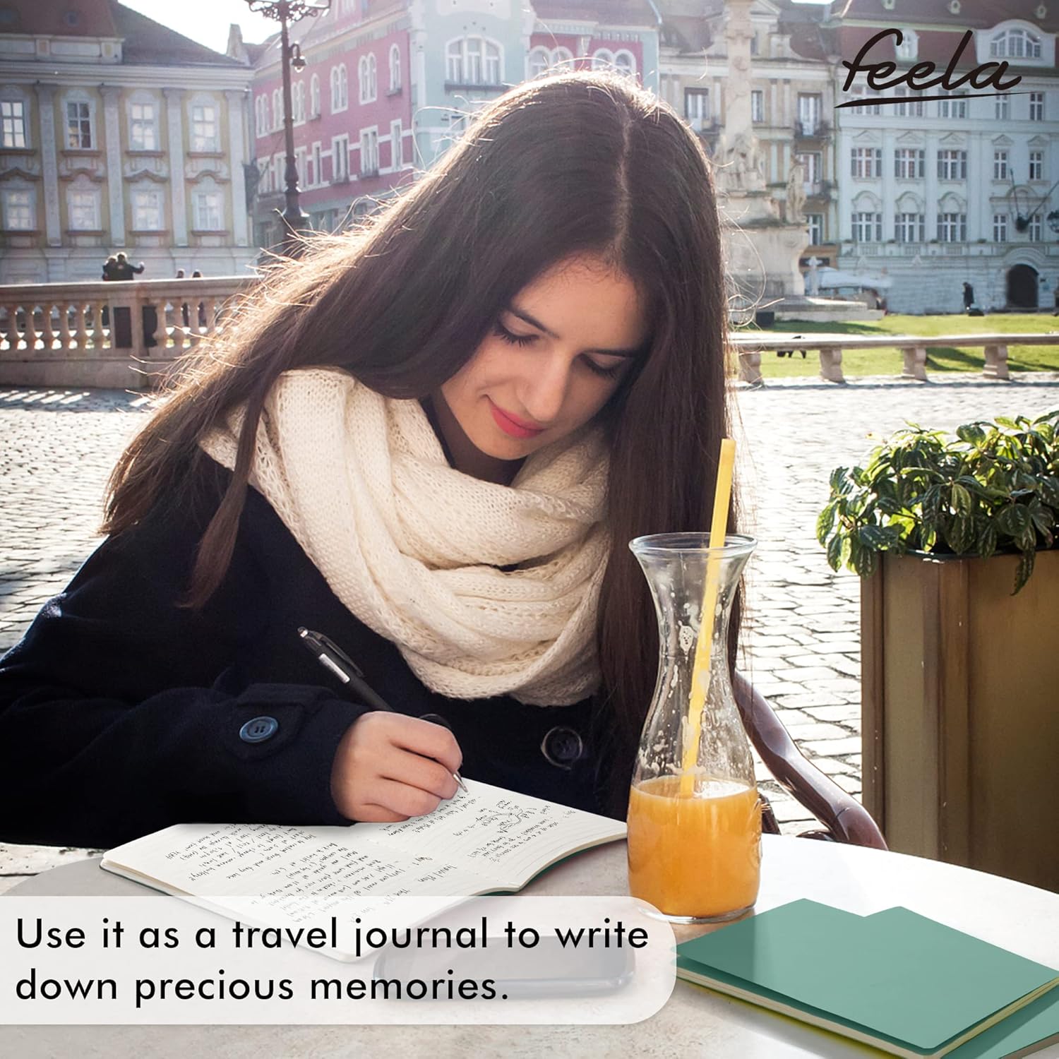 - Feela 8 Pack Soft Cover Journals include 8 dark green A5 college ruled soft cover travel journals. 250 GSM colored paper cover outside and 80 GSM smooth writing lined pages inside.