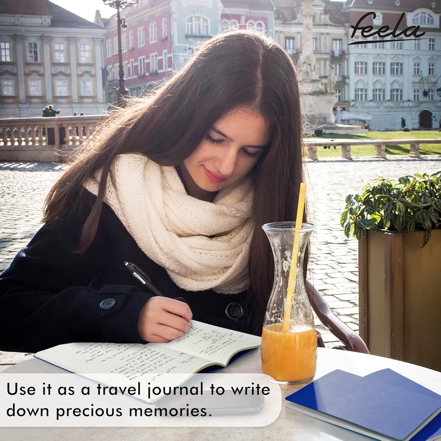 - Feela 8 Pack Soft Cover Journals include 8 navy A5 college ruled soft cover travel journals. 250 GSM colored paper cover outside and 80 GSM smooth writing lined pages inside.