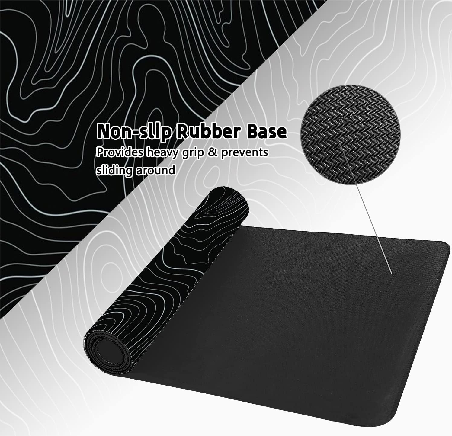 - 【 Non-slip rubber base 】The bottom of the mouse pad is made of non-slip natural rubber material, with a non-slip texture design, which can be firmly fixed on the desktop. Suitable for all types of tables, including wood, glass, leather, metal, marble tables and more. won't make it move even if you have intense mouse swipe.