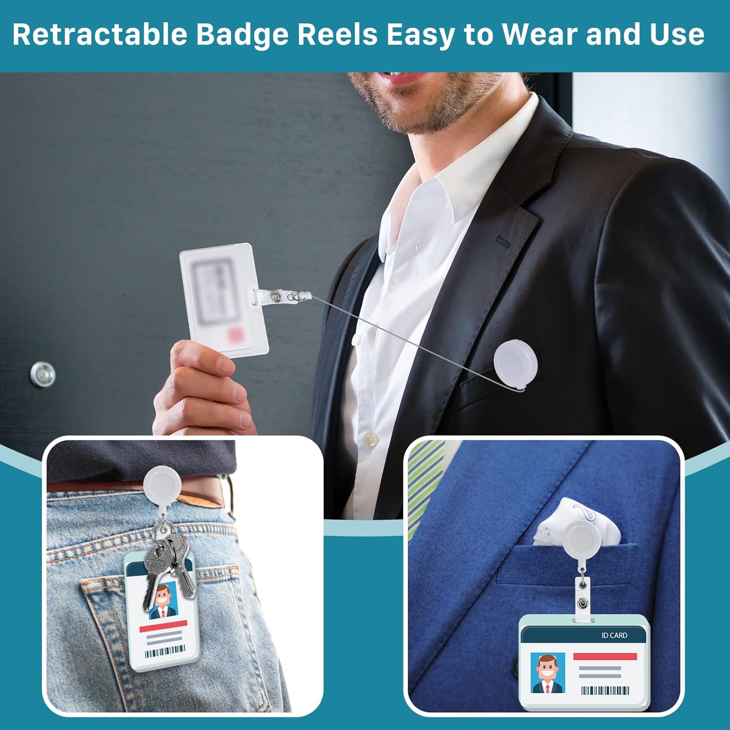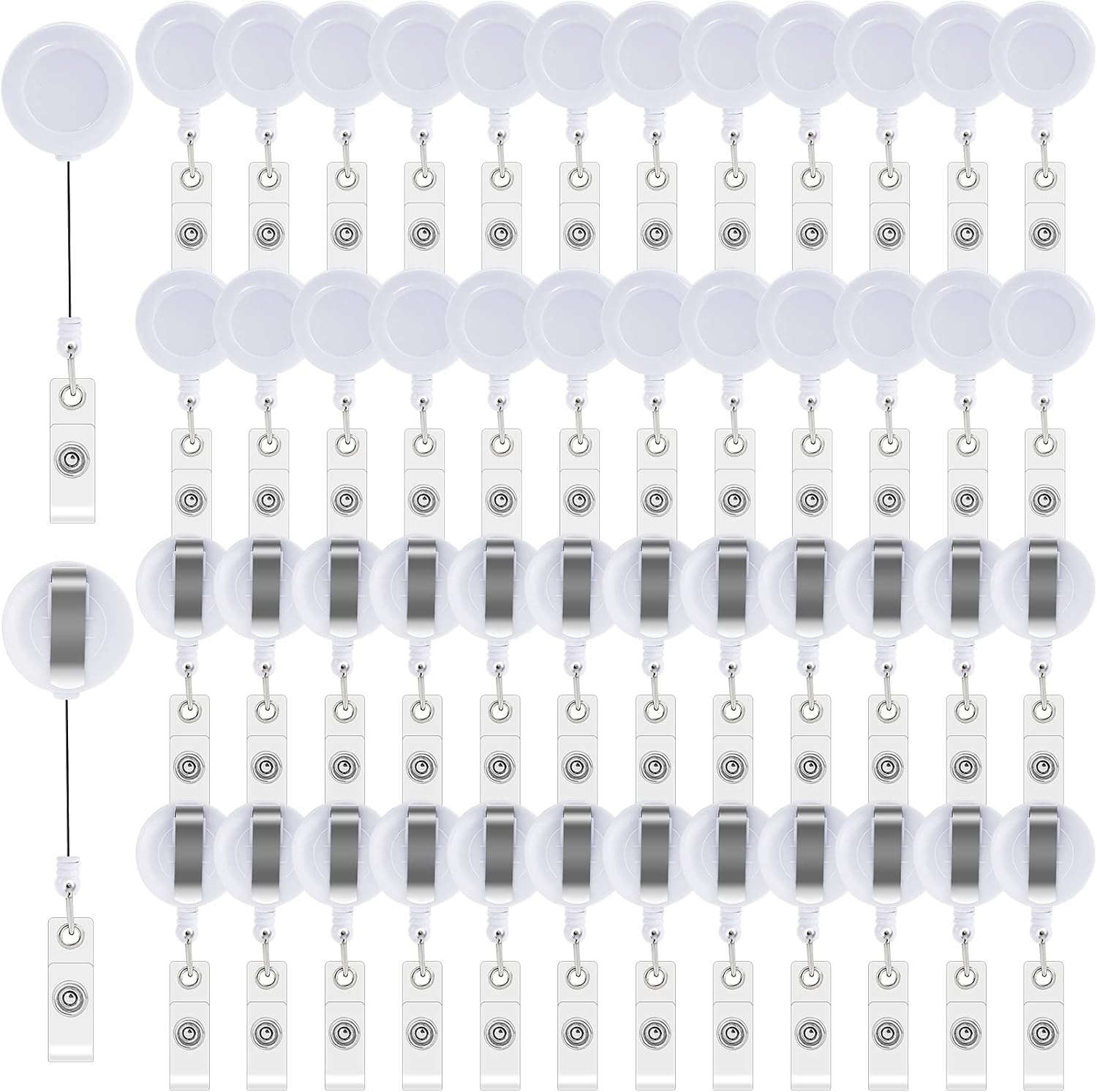 50 Pack Retractable Badge Reels,Retractable Badge Holder Reels with Belt Clip,Badge Reel Clips Holder for Hanging ID Card Key Chain Doctor Nurse Teachers Students Office Workers (White)