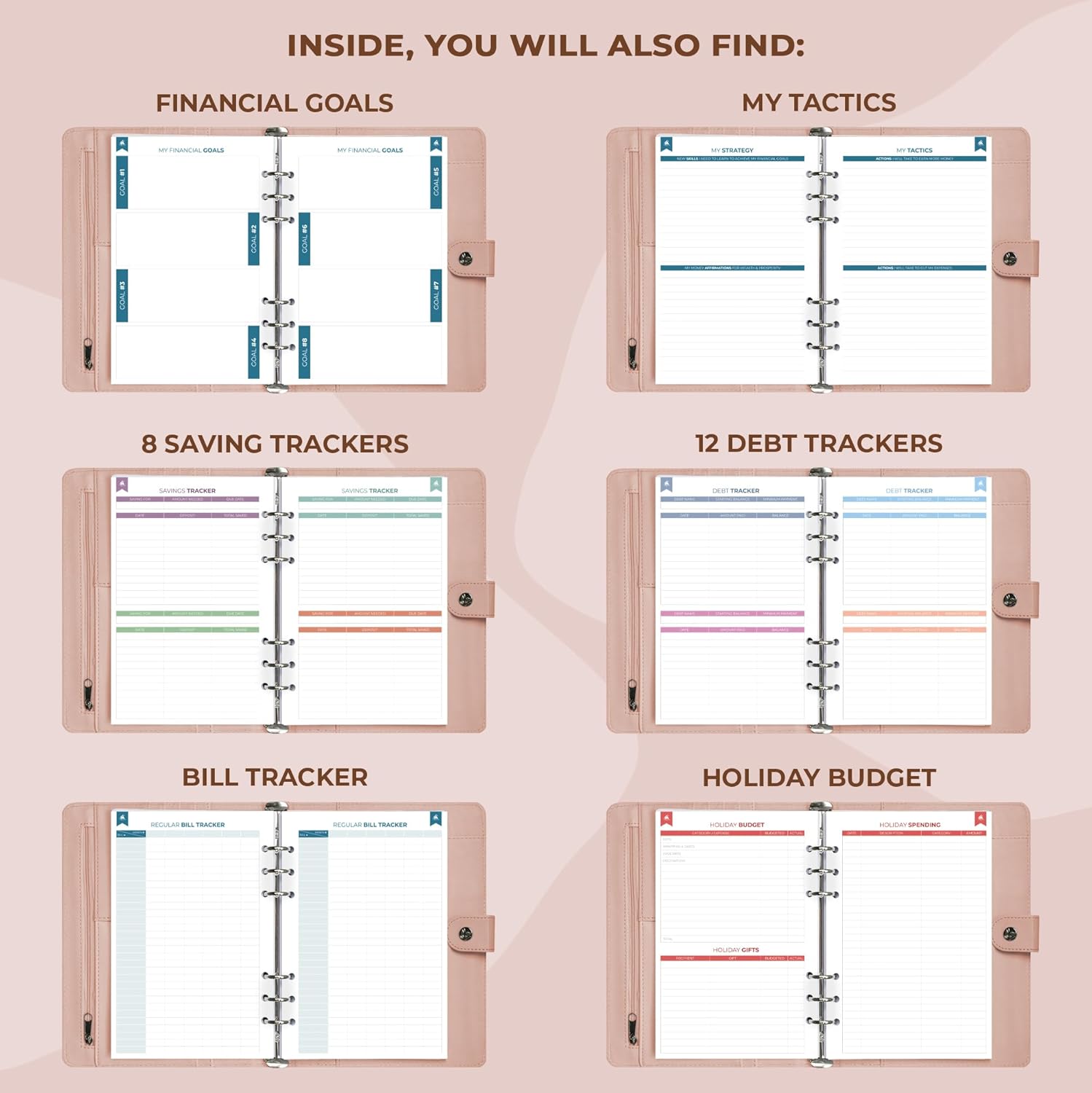 - STORAGE POCKETS, CASH ENVELOPES & BUDGET SHEETS – The budget organizer has 9 storage pockets to store cards and other loose items; 12 tear- and water-resistant cash envelopes; and 12 budget sheets for tracking your monthly spending.
