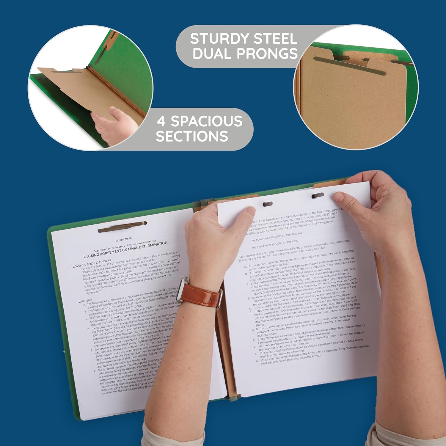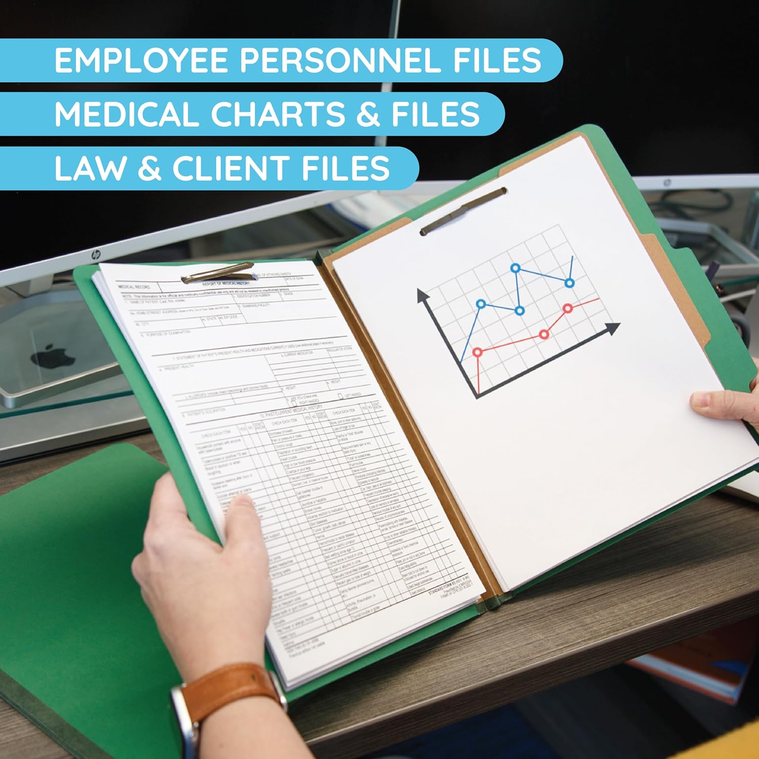 - Quickly and easily organize medical records, project reports, and important documents with our green classification folders, 1 divider, letter size (8.5in x 11in), 10 per box.