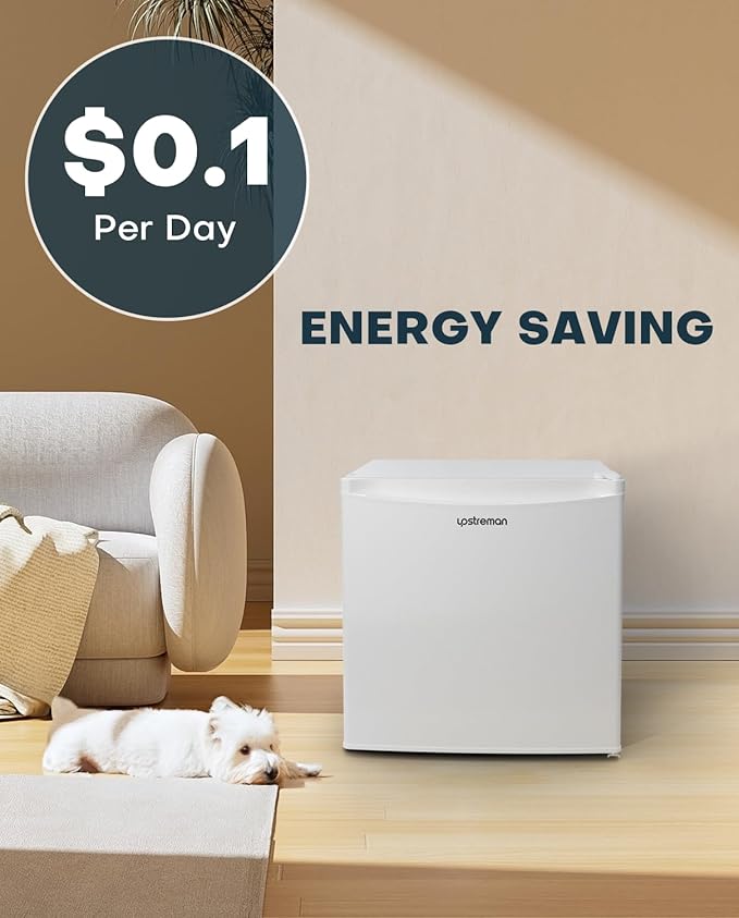 Upstreman 1.7 Cu.ft Mini Fridge with Freezer, Dorm Essentials, Adjustable Thermostat, Energy Saving, Low Noise, Single Door Compact Refrigerator for Dorm, Office, Bedroom, White-FR17