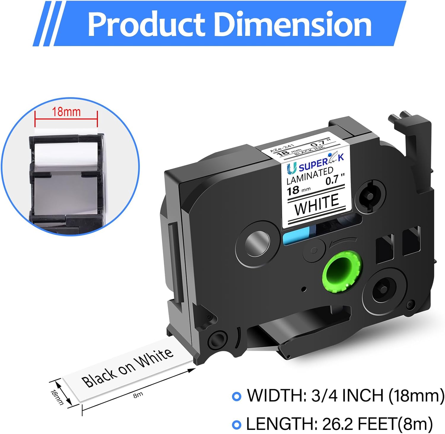 - USUPERINK compatible for brother p-touch label tape TZe-241 TZe241 TZ-241 TZ241 AZe-241 18mm 0.7 inch 3/4'' standard laminated label maker tapes.