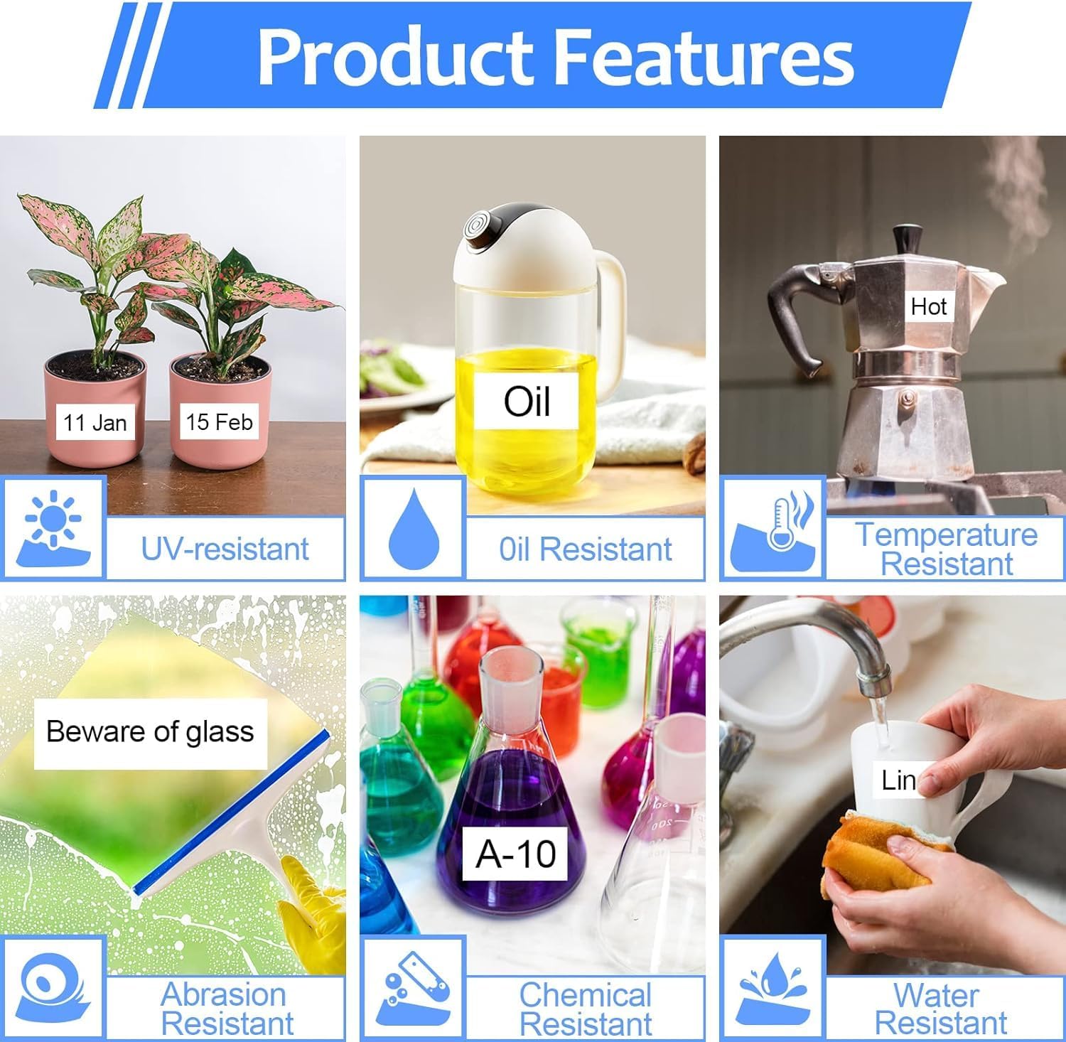 - These laminated ptouch 18mm tze tz tapes are water resistant/waterproof, grime resistant, grease resistant, temperature resistant, abrasion resistant, chemical resistant as well as fading resistant.