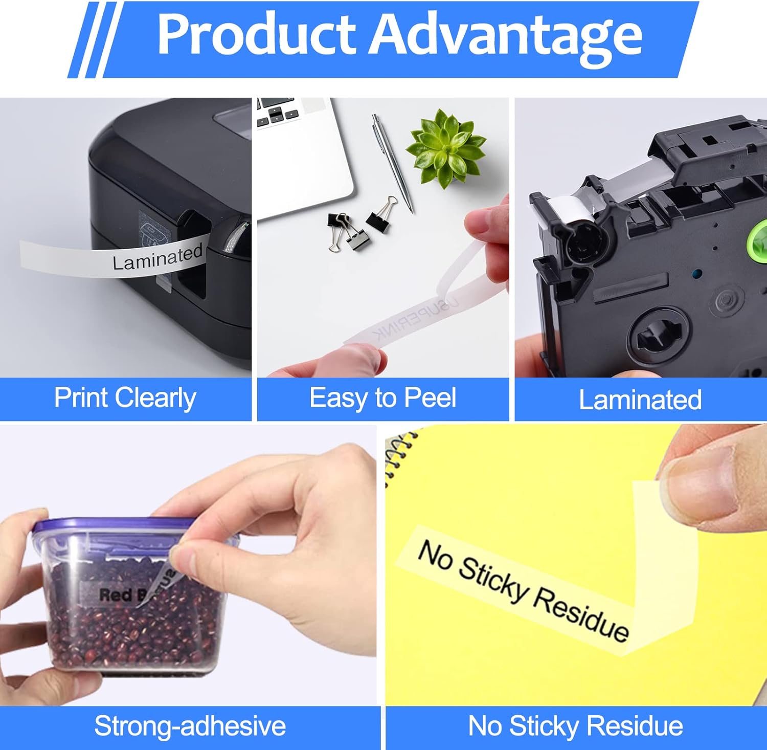 - Our replacement laminated tape are great for indoor and outdoor application, ideal for flat and dry, smooth flat surfaces, including in homes, offices, schools, hotels and hospitals, for labeling files, folders, shelves, books, accessories, etc