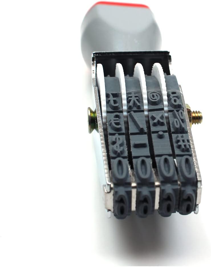 - 4-digit Numbering Stamps 4-wheel,Each belt 0-9 (10 digits)and Symbol ,each belt can freely rotate different numbers,Symbol. Made of rubber material, durable, not easily be broken.